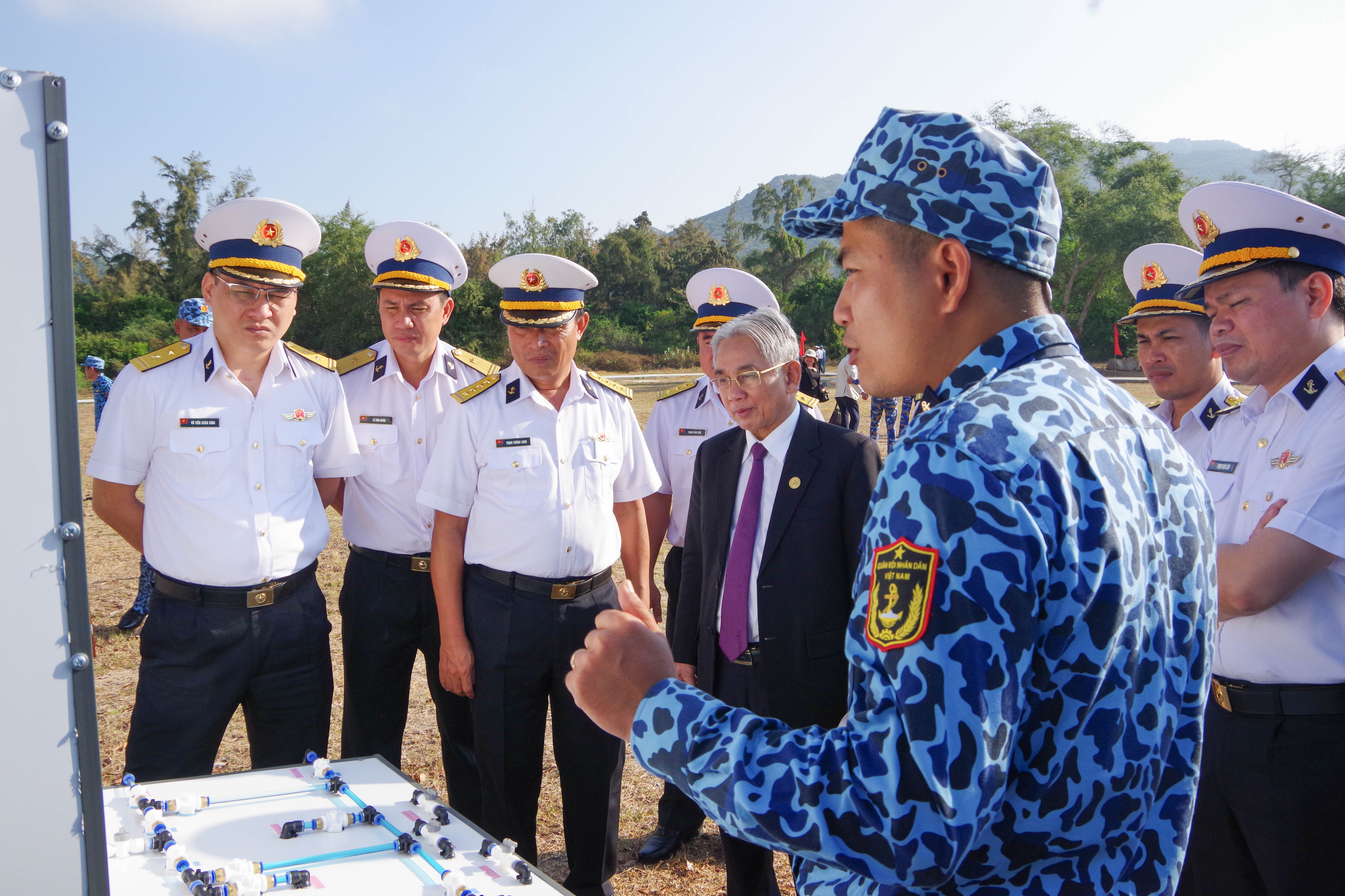 | Phó Đô đốc Trần Thanh Nghiêm dự, động viên và kiểm tra kết quả mô hình học cụ, sáng kiến cải tiến kỹ thuật của lữ đoàn. |