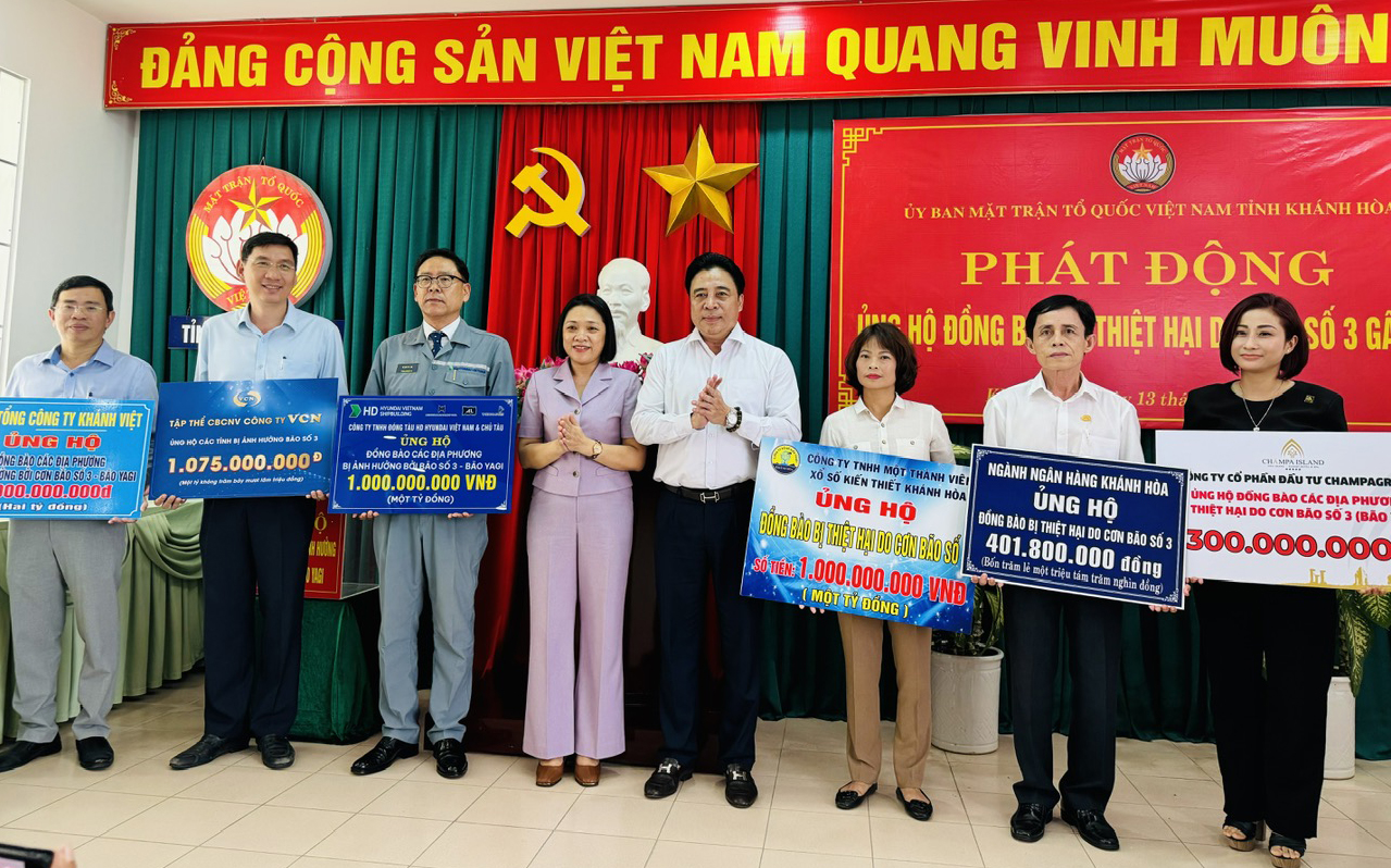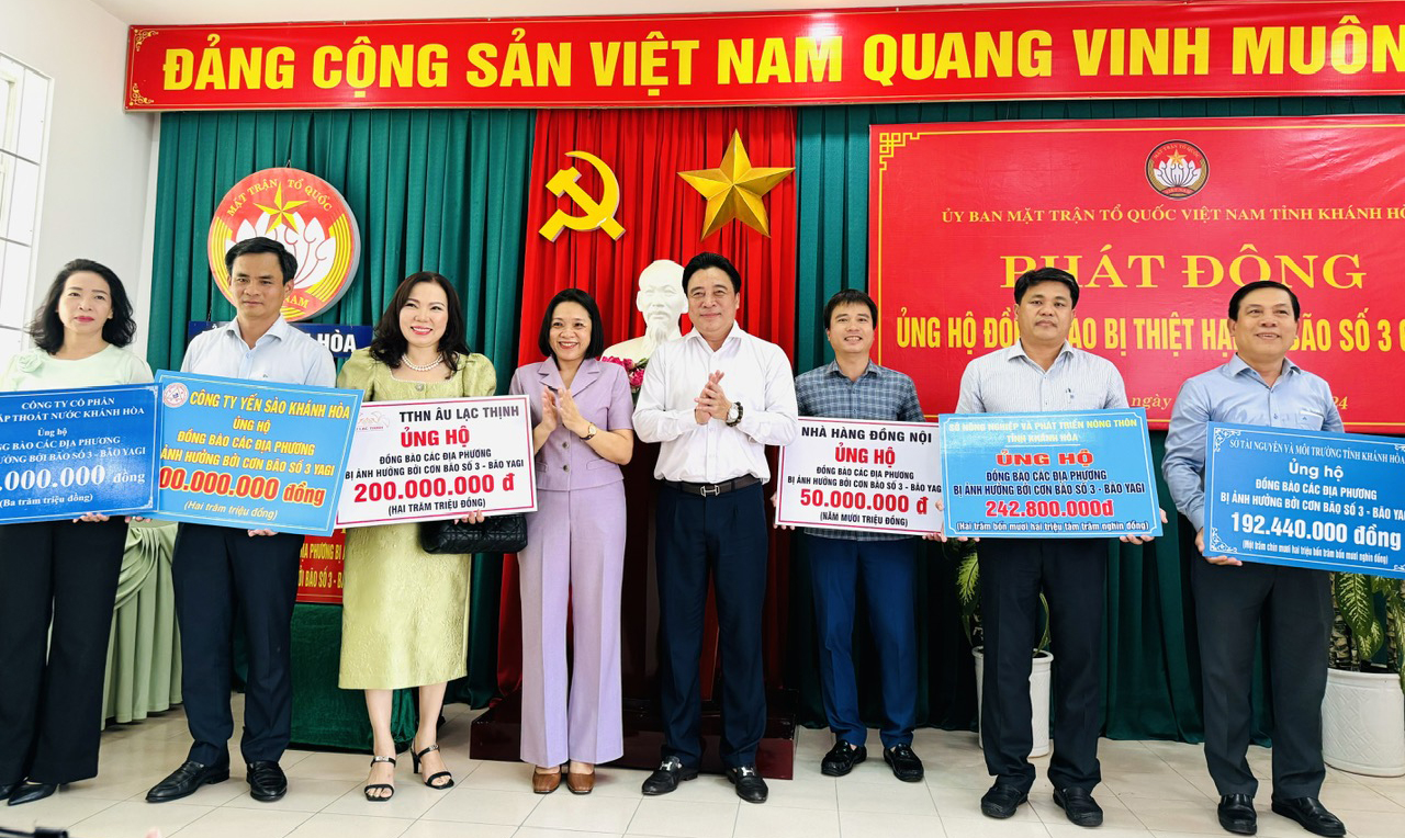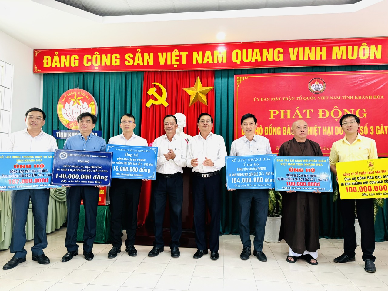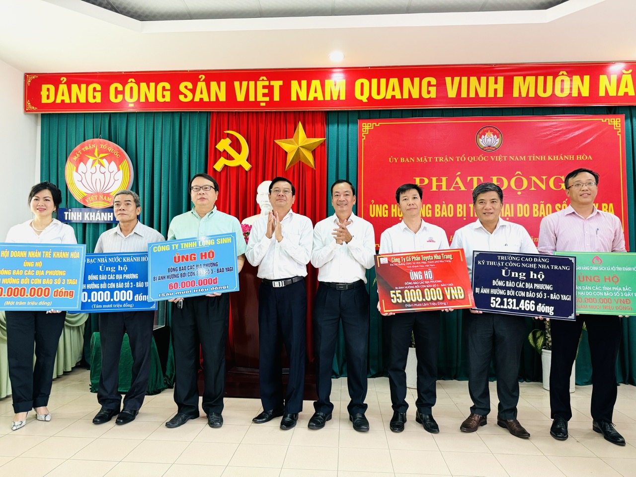 Chiều 13-9, UBMTTQ Việt Nam tỉnh Khánh Hòa phát động ủng hộ đồng bào bị thiệt hại do bão số 3 gây ra. Tham dự có ông Nguyễn Khắc Toàn - Phó Bí thư Thường trực Tỉnh ủy, Chủ tịch HĐND tỉnh; ông Trần Mạnh Dũng - Phó Chủ tịch Thường trực HĐND tỉnh; ông Lê Hữu Hoàng - Phó Chủ tịch Thường trực UBND tỉnh; bà Trần Thu Mai - Chủ tịch UBMTTQ Việt Nam tỉnh; bà Phạm Thị Xuân Trang - Phó Chủ tịch HĐND tỉnh.
