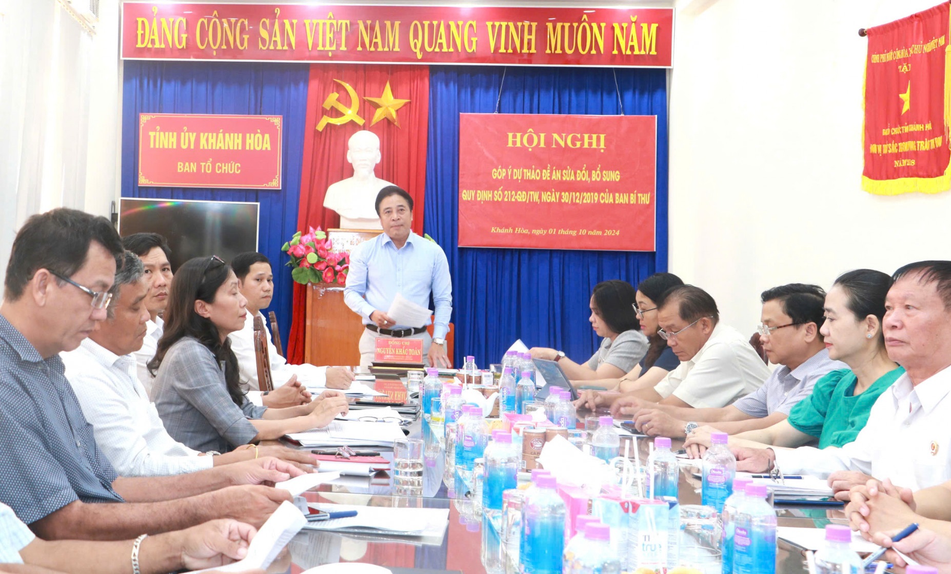 Phát biểu tại hội nghị, Phó Bí thư Thường trực Tỉnh ủy Nguyễn Khắc Toàn cho biết, Khánh Hòa trong quá trình thực hiện Quy định 212 của Ban Bí thư cũng gặp một số khó khăn, nhất là vấn đề biên chế, dẫn đến một số đơn vị đầu mối trực thuộc cơ quan chuyên trách của UBMTTQ và các tổ chức chính trị - xã hội cấp tỉnh chưa đảm bảo số lượng tối thiểu theo quy định “Tối thiểu có 5 người mới thành lập một đầu mối trực thuộc”. Đối với Dự thảo Đề án sửa đổi, bổ sung Quy định số 212-QĐ/TW, Khánh Hòa cơ bản thống nhất với bố cục, nội dung dự thảo. Tuy nhiên, tại Điều 9 dự thảo quy định có nêu “Việc thành lập, giải thể và xác định số lượng viên chức trong các đơn vị sự nghiệp công lập trực thuộc UBMTTQ và các tổ chức chính trị - xã hội ở địa phương do Đảng đoàn UBMTTQ và các tổ chức chính trị - xã hội cấp tỉnh phối hợp với Ban Tổ chức Tỉnh ủy, Thành ủy và Ban Cán sự Đảng UBND cấp tỉnh trình Ban Thường vụ Tỉnh ủy, Thành ủy quyết định…”, Phó Bí thư Thường trực Tỉnh ủy Nguyễn Khắc Toàn đề nghị bổ sung Ban Thường vụ Tỉnh đoàn vì Tỉnh đoàn không có Đảng đoàn và hoàn chỉnh lại như sau: “...Đảng đoàn UBMTTQ và các tổ chức chính trị - xã hội cấp tỉnh, Ban Thường vụ Tỉnh đoàn phối hợp với Ban Tổ chức Tỉnh ủy, Thành ủy và Ban Cán sự Đảng UBND cấp tỉnh trình Ban Thường vụ Tỉnh ủy, Thành ủy quyết định…”. Đồng thời, ông Nguyễn Khắc Toàn đề nghị quy định cụ thể thẩm quyền việc thành lập, giải thể và xác định số lượng viên chức trong các đơn vị sự nghiệp công lập trực thuộc UBMTTQ và các tổ chức chính trị - xã hội ở từng cấp (cấp tỉnh và cấp huyện)…