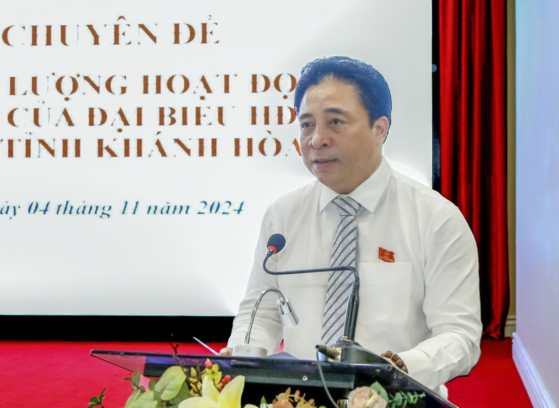 Sáng 4-11, Thường trực HĐND tỉnh Khánh Hòa phối hợp với Ban Thường trực UBMTTQ Việt Nam tỉnh tổ chức Hội thảo chuyên đề “Nâng cao chất lượng hoạt động tiếp xúc cử tri của đại biểu HĐND trên địa bàn tỉnh Khánh Hòa”. Ông Nguyễn Khắc Toàn - Phó Bí thư Thường trực Tỉnh ủy, Chủ tịch HĐND tỉnh; ông Trần Mạnh Dũng - Phó Chủ tịch Thường trực HĐND tỉnh; bà Trần Thu Mai - Chủ tịch UBMTTQ Việt Nam tỉnh; bà Phạm Thị Xuân Trang - Phó Chủ tịch HĐND tỉnh đồng chủ trì hội thảo. Tham dự hội thảo có ông Nguyễn Tấn Tuân - Phó Bí thư Tỉnh ủy, Chủ tịch UBND tỉnh; các vị trong Thường trực HĐND tỉnh, Ban Thường trực UBMTTQ Việt Nam tỉnh; đại diện các tổ đại biểu HĐND tỉnh; đại diện Thường trực HĐND, Ban Thường trực UBMTTQ Việt Nam các địa phương cấp huyện và một số địa phương cấp xã trong tỉnh.