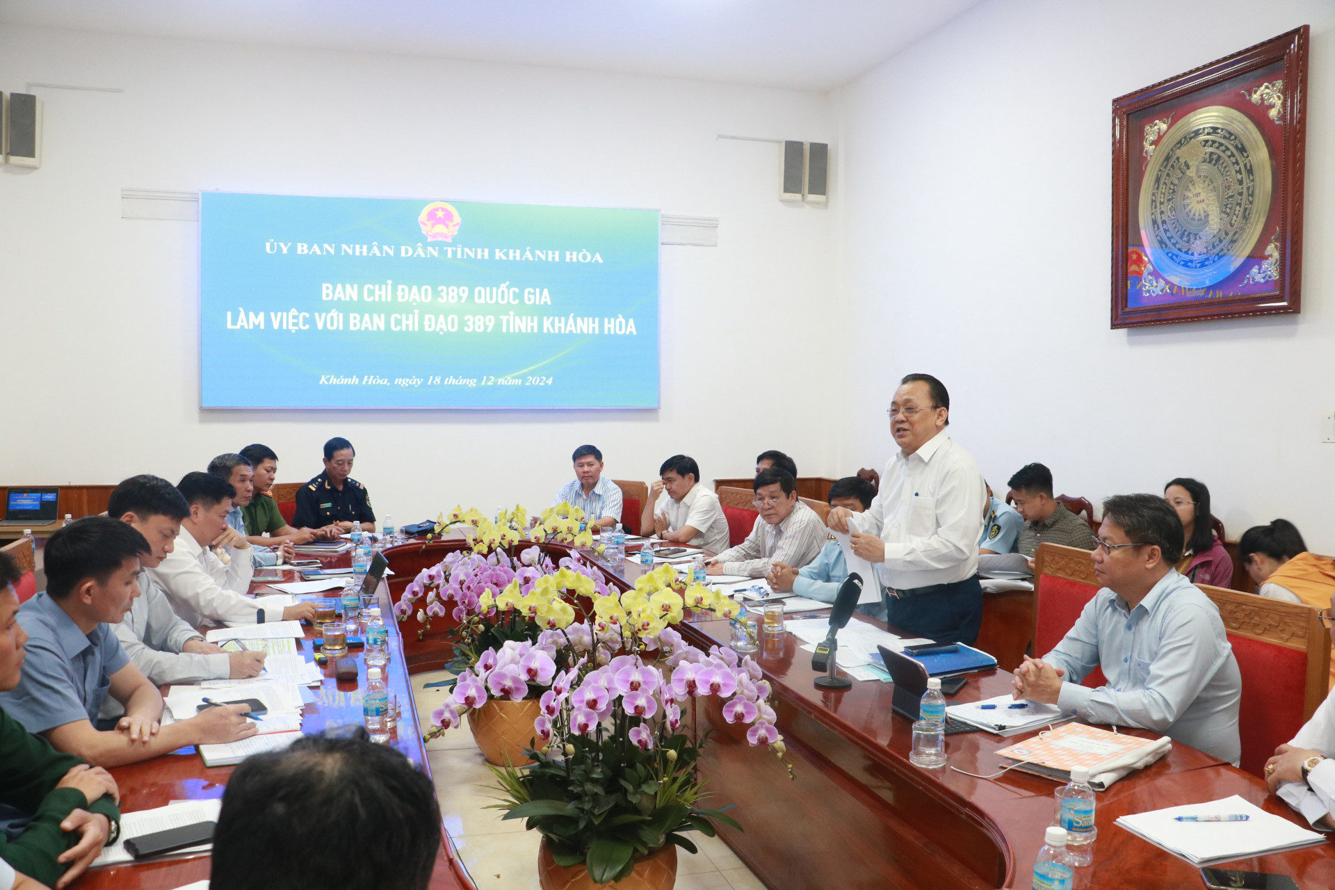 Sáng 18-12, Đoàn công tác của Ban Chỉ đạo quốc gia chống buôn lậu, gian lận thương mại và hàng giả (Ban Chỉ đạo 389 Quốc gia) do ông Vương Trường Nam - Phó Chánh Văn phòng Thường trực Ban Chỉ đạo 389 quốc gia làm trưởng đoàn đã có buổi làm việc với tỉnh Khánh Hòa về công tác chống buôn lậu, gian lận thương mại và hàng giả trên địa bàn tỉnh. Tiếp và làm việc với đoàn có ông Lê Hữu Hoàng - Ủy viên Ban Thường vụ Tỉnh ủy, Phó Chủ tịch Thường trực UBND tỉnh, Trưởng Ban Chỉ đạo 389 tỉnh Khánh Hòa.