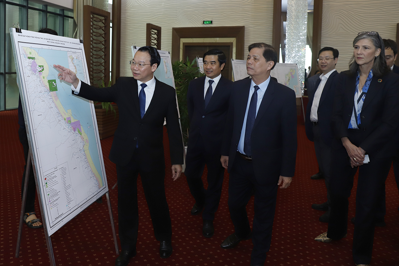 Tại hội nghị, Bộ trưởng Bộ TN-MT Đỗ Đức Duy đã trao Hồ sơ Quy hoạch tổng thể khai thác, sử dụng bền vững tài nguyên vùng bờ thời kỳ 2021 - 2030, tầm nhìn đến năm 2050 cho đại diện UBND các tỉnh: Khánh Hòa, Phú Yên và Kiên Giang.