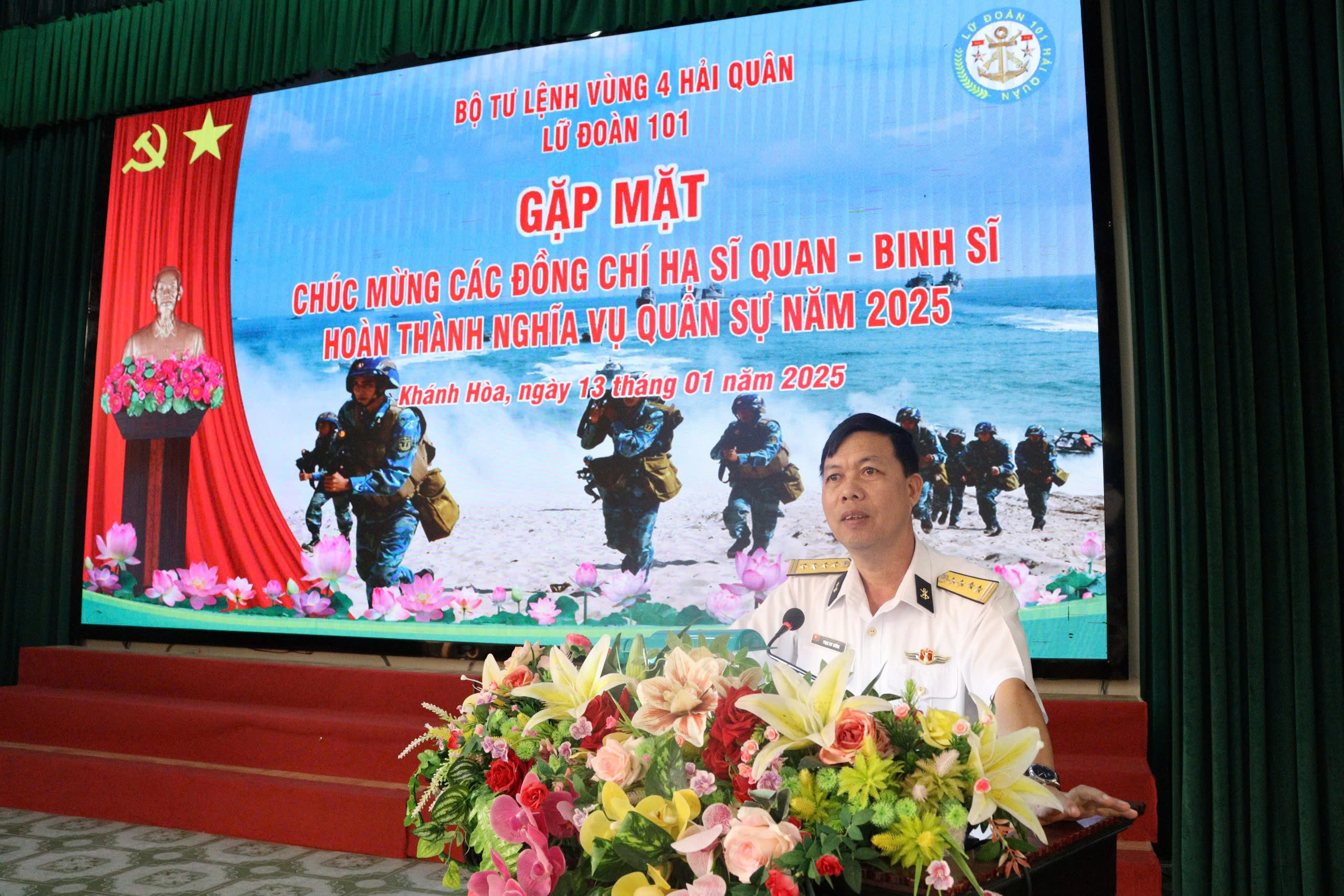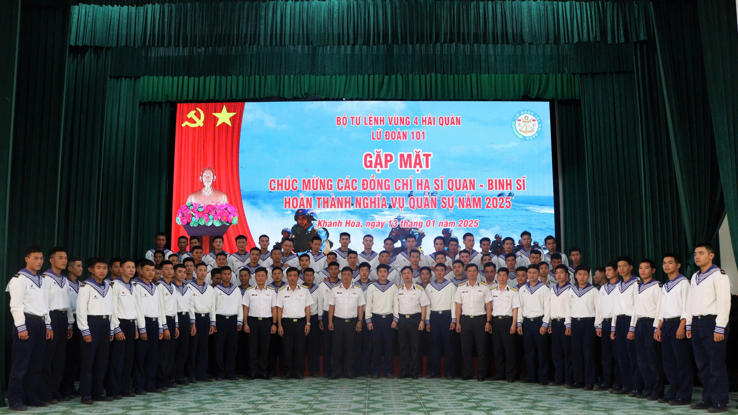 Ngày 13-1, Lữ đoàn 101, Vùng 4 Hải quân tổ chức gặp mặt, chúc mừng các hạ sĩ quan, chiến sĩ xuất ngũ năm 2025. Đại tá Phạm Duy Hướng - Bí thư Đảng ủy, Chính ủy Lữ đoàn dự, chỉ đạo.