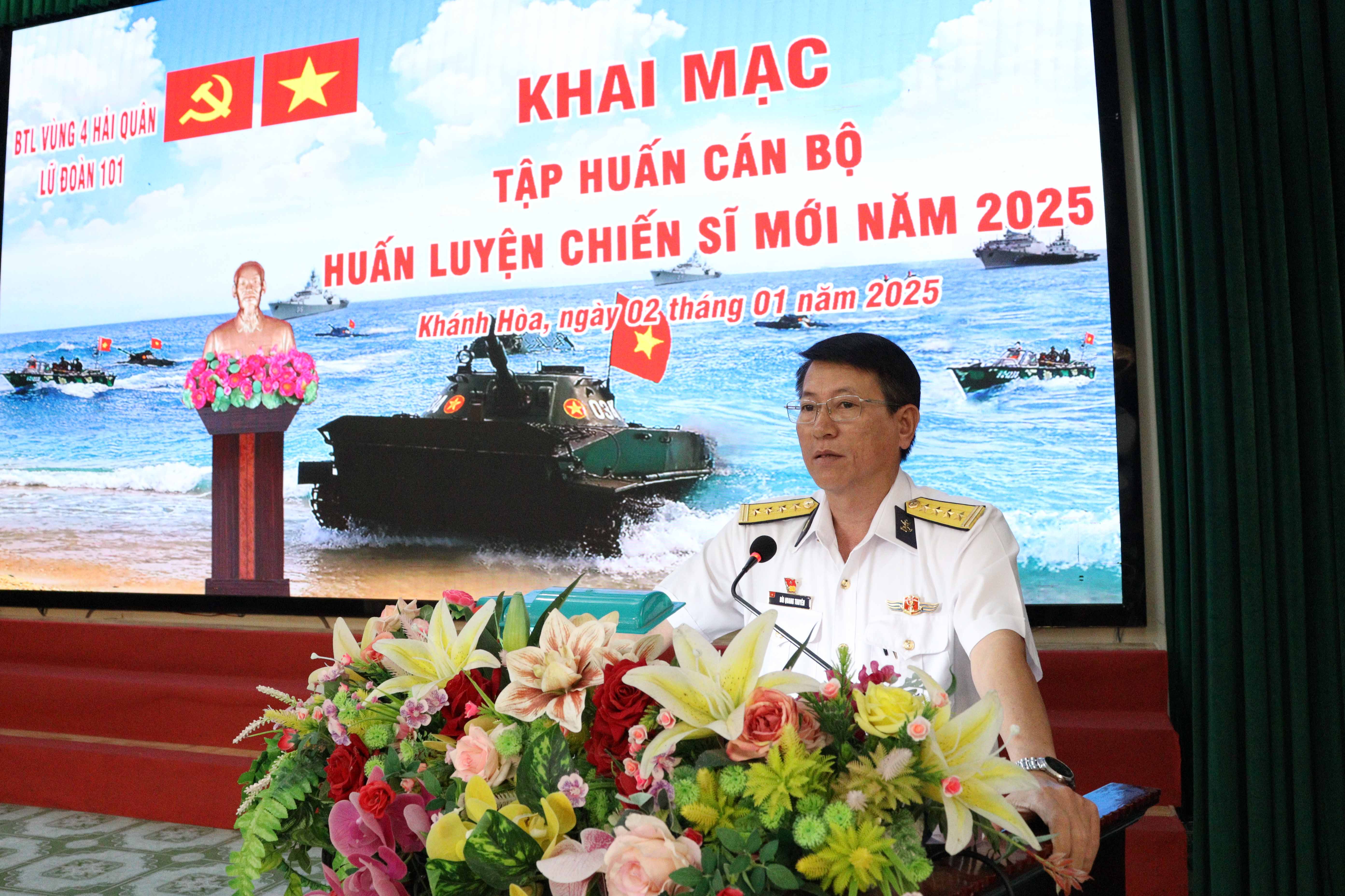 Ngày 2-1, Lữ đoàn 101, Vùng 4 Hải quân tổ chức khai mạc lớp tập huấn cán bộ huấn luyện chiến sĩ mới năm 2025. Đại tá Bùi Quang Thuyên - Lữ đoàn trưởng dự, chỉ đạo.
