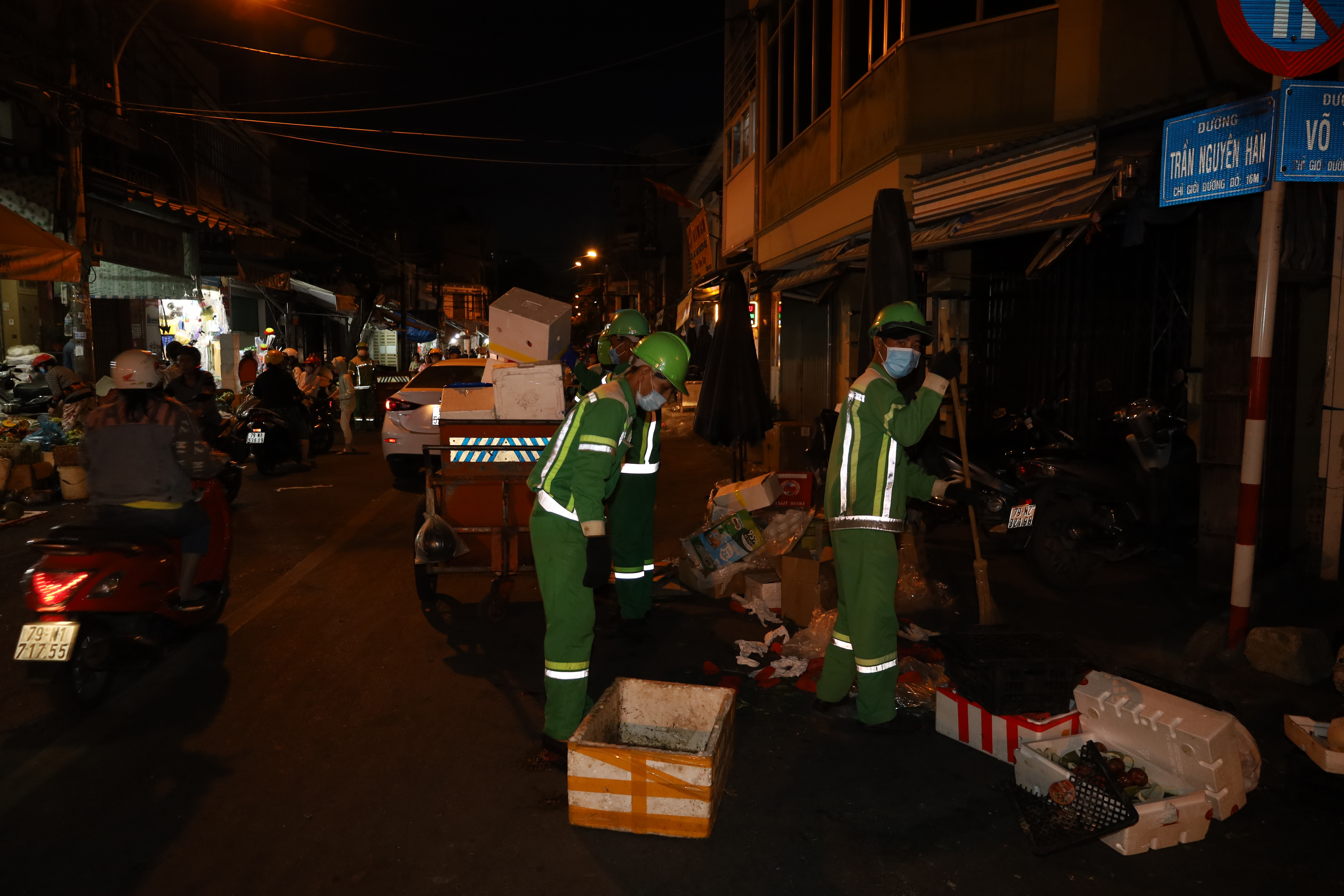 | Các công nhân sẵn sàng làm nhiệm vụ tại khu vực chợ Đầm. |