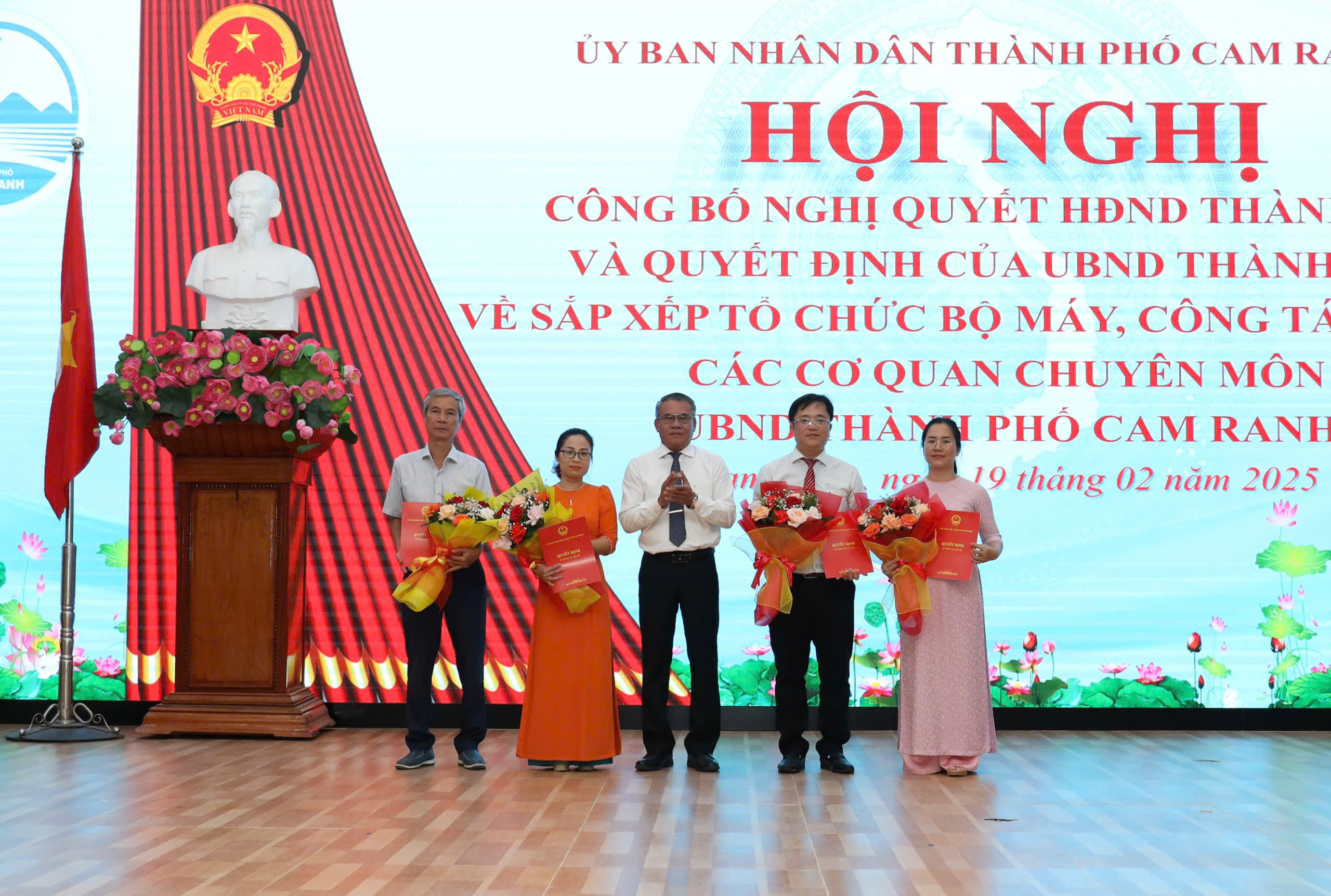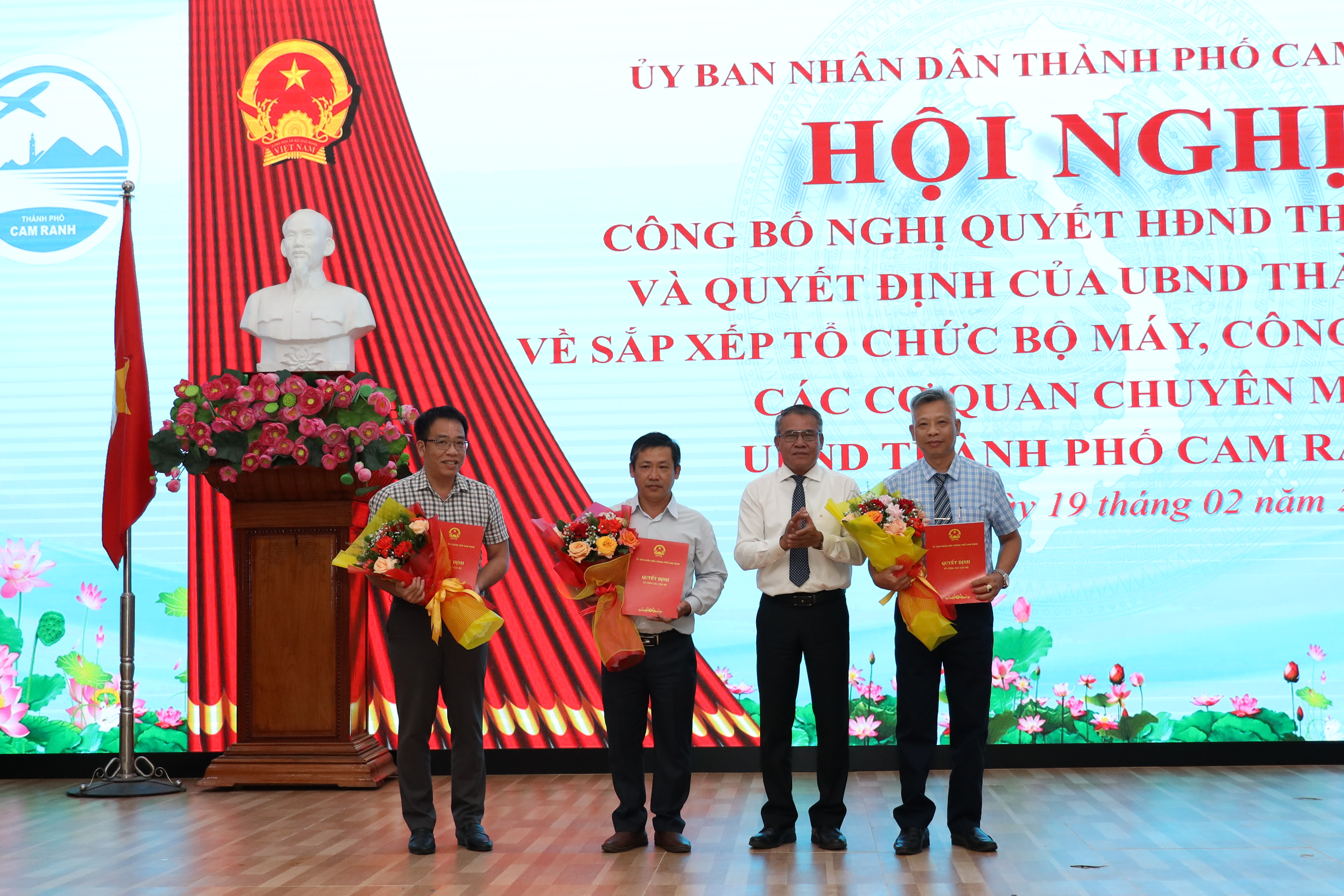 Chiều cùng ngày, UBND TP. Cam Ranh đã tổ chức hội nghị công bố Nghị quyết của HĐND TP. Cam Ranh và Quyết định của UBND TP. Cam Ranh về sắp xếp tổ chức bộ máy, công tác cán bộ các cơ quan chuyên môn UBND TP. Cam Ranh. Sau khi công bố các Nghị quyết của HĐND thành phố, UBND TP. Cam Ranh đã công bố các quyết định về công tác nhân sự các phòng chuyên môn và Văn phòng HĐND và UBND TP. Cam Ranh sau khi sắp xếp lại và thành lập mới.