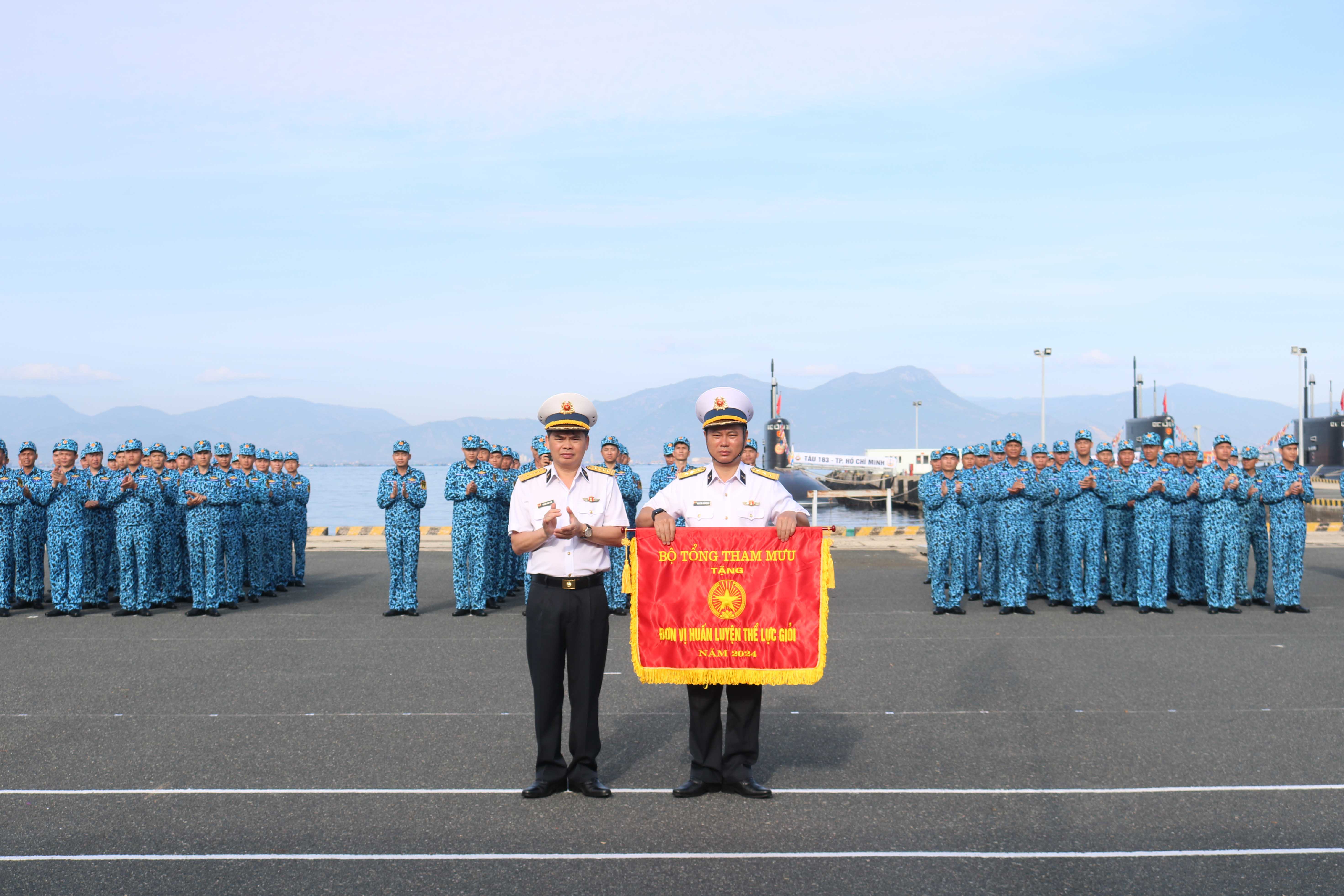 | Lữ đoàn Tàu ngầm 189 Hải quân đón nhận cờ “Đơn vị huấn luyện thể lực giỏi" năm 2024. |