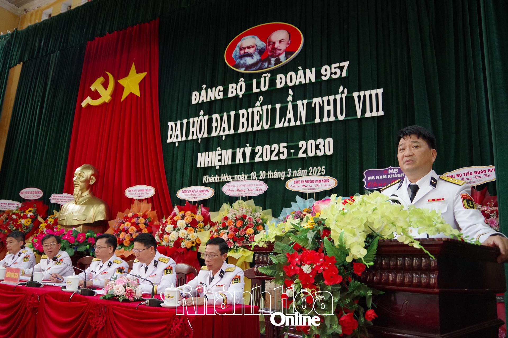 Phát biểu chỉ đạo đại hội, Thượng tá Bùi Xuân Bình biểu dương và chúc mừng những thành tích xuất sắc mà Đảng bộ Lữ đoàn 957 đạt được trong nhiệm kỳ qua. Đồng thời chỉ đạo, trong nhiệm kỳ tới, Đảng bộ Lữ đoàn 957 tiếp tục quán triệt đường lối, quan điểm của Đảng về nhiệm vụ quân sự quốc phòng, vận dụng sát với tình hình thực tiễn của đơn vị; nâng cao chất lượng công tác giáo dục chính trị tư tưởng; xây dựng Đảng bộ vững mạnh về chính trị, tư tưởng, tổ chức, đạo đức. Đồng thời, đẩy mạnh các khâu đột phá của ngành Hậu cần, kỹ thuật; nâng cao đời sống vật chất, tinh thần cho bộ đội, nhất là cán bộ, chiến sĩ công tác trên các điểm đóng quân lẻ…