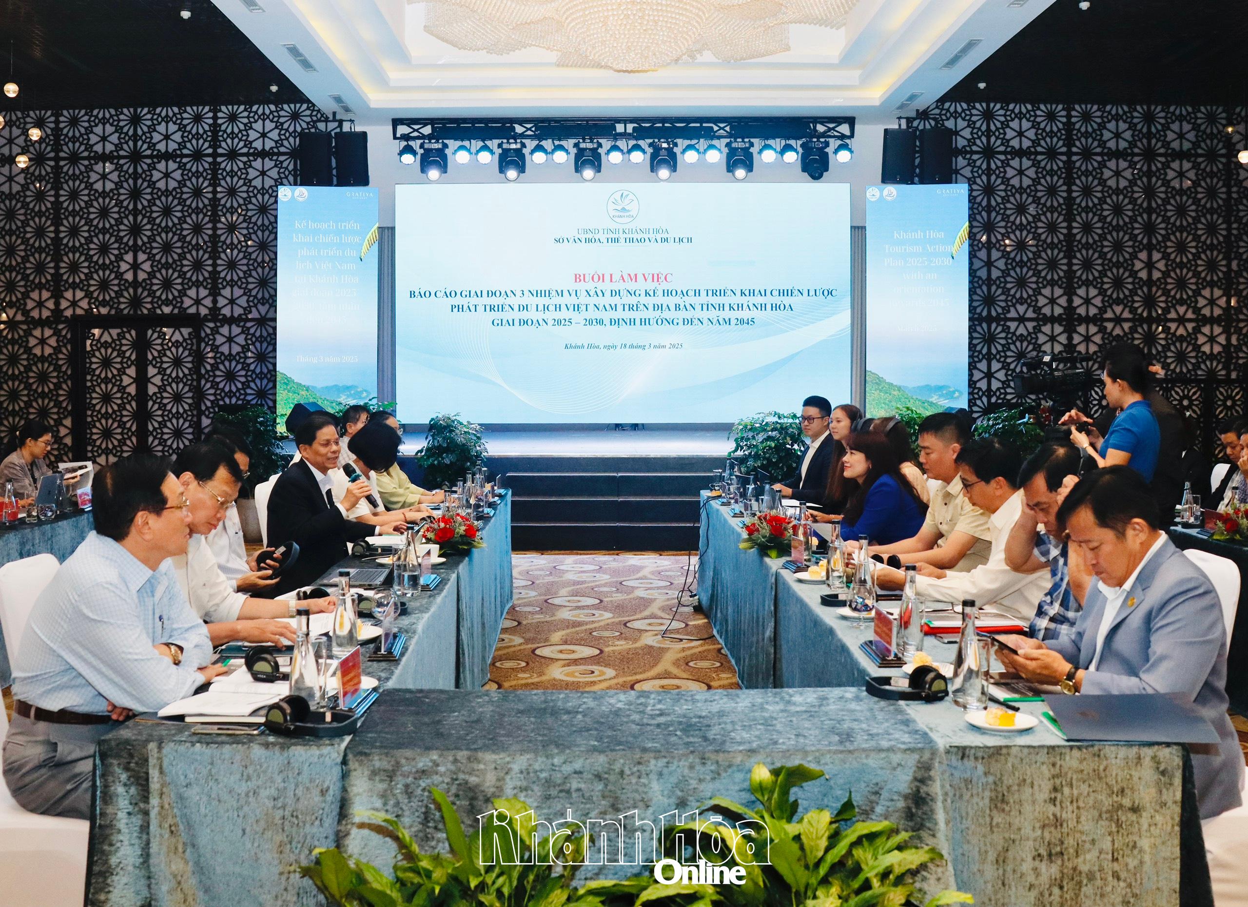 Tại cuộc họp, đơn vị tư vấn đã trình bày dự thảo Kế hoạch triển khai chiến lược phát triển du lịch Khánh Hòa giai đoạn 2025 - 2030, định hướng đến năm 2045 (giai đoạn 3) nhằm đạt mục tiêu đến năm 2030, Khánh Hòa sẽ đón hơn 21,1 triệu khách lưu trú, trong đó có hơn 10,5 triệu lượt khách quốc tế; doanh thu du lịch đạt 121.830 tỷ đồng; tạo 250.000 việc làm; có 90.000 phòng lưu trú.