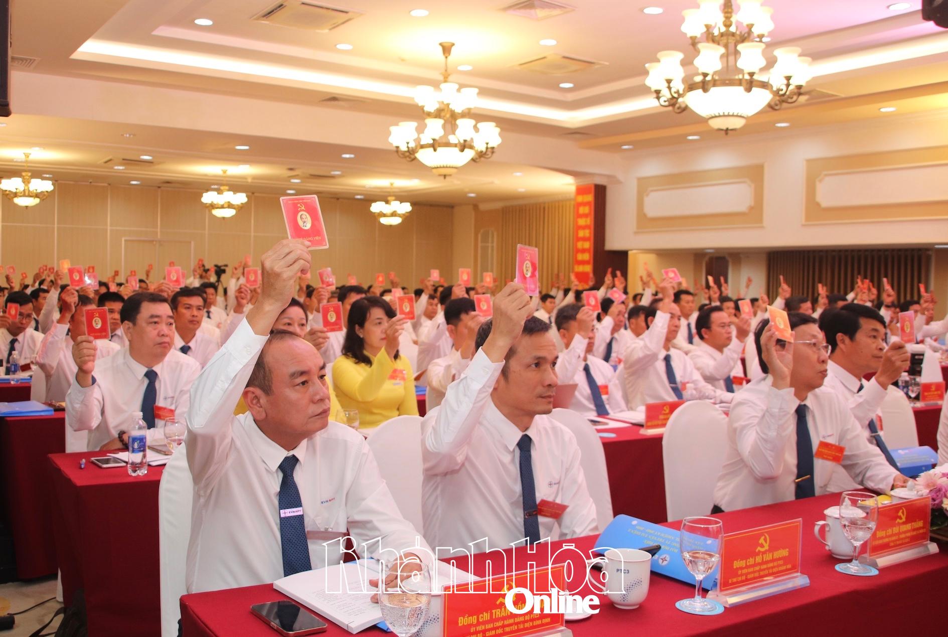 | Đại biểu biểu quyết các nội dung tại Đại hội. |