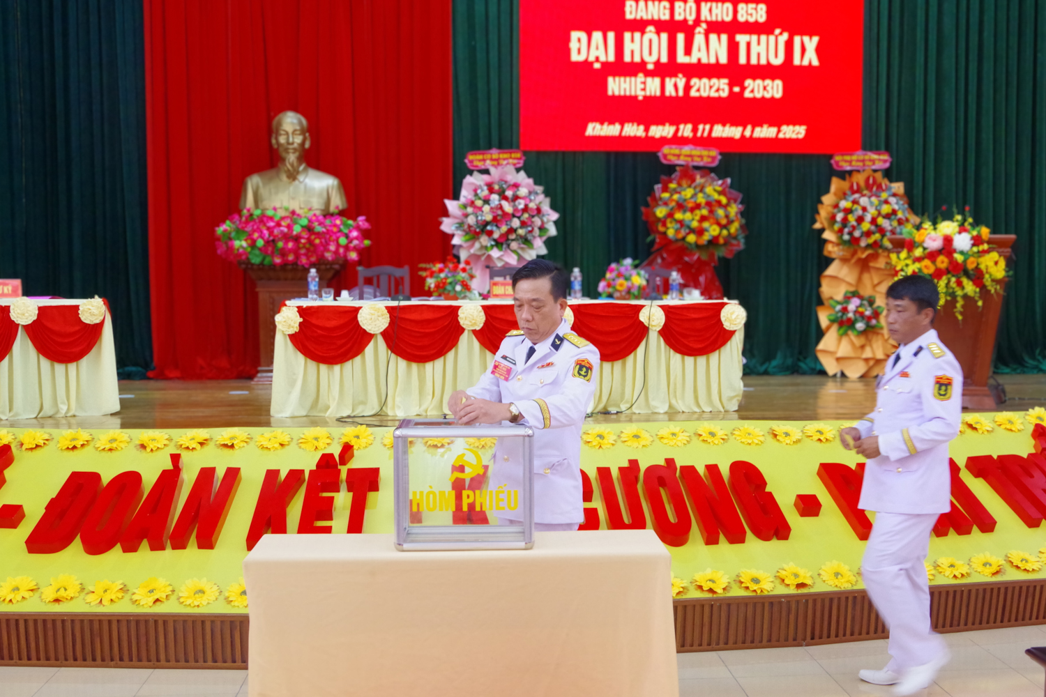 Đại hội đã bầu Ban Chấp hành Đảng bộ kho khóa mới gồm 9 ủy viên. Ban Chấp hành Đảng bộ Kho 858, nhiệm kỳ 2025 - 2030 đã họp phiên đầu tiên bầu Ban Thường vụ, Bí thư, Phó Bí thư Đảng ủy, Ủy ban Kiểm tra Đảng ủy nhiệm kỳ mới.