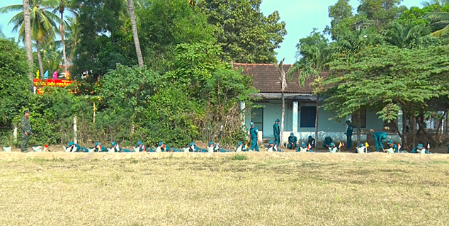 | Các chiến sĩ dân quân tự vệ tham gia huấn luyện tại thao trường. |