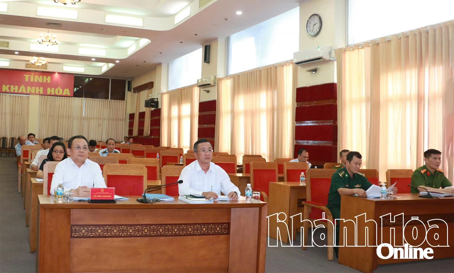 | Phó Chủ tịch Thường trực UBND tỉnh Lê Hữu Hoàng dự hội nghị tại điểm cầu Khánh Hòa. |
