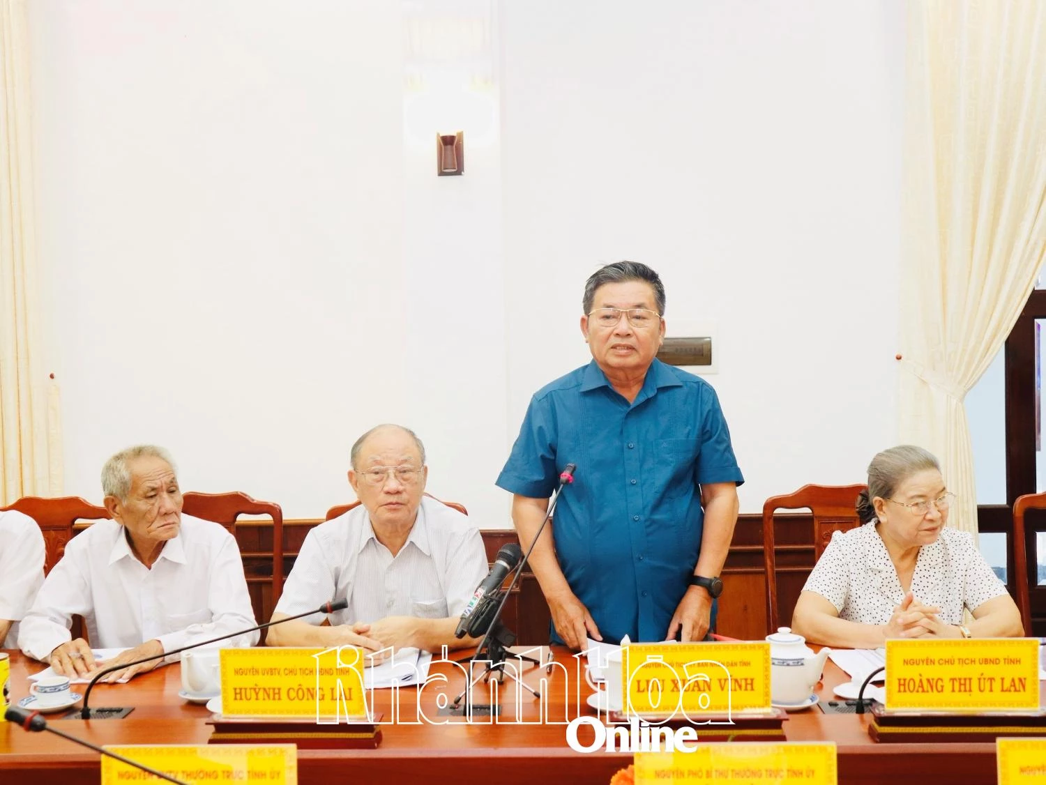 Bí thư Tỉnh ủy Ninh Thuận Nguyễn Đức Thanh đề nghị các vị nguyên lãnh đạo tỉnh Ninh Thuận phát huy tinh thần trách nhiệm, đóng góp có giá trị vào các nội dung trọng tâm, gồm: Đánh giá kết quả đạt được và tồn tại trong nhiệm kỳ 2020 - 2025; những bài học kinh nghiệm; các mục tiêu, chỉ tiêu (nhất là mục tiêu về tốc độ tăng trưởng GRDP bình quân hằng năm đạt 11-12%), nhiệm vụ trọng tâm, chiến lược đột phá để thực hiện thành công mục tiêu đưa tỉnh trở thành đô thị trực thuộc Trung ương, một cực tăng trưởng mới của cả nước…