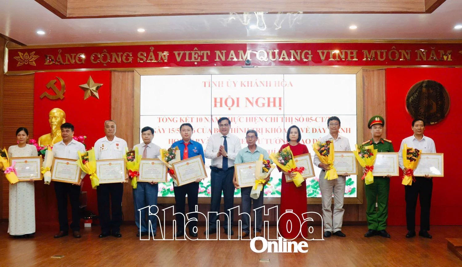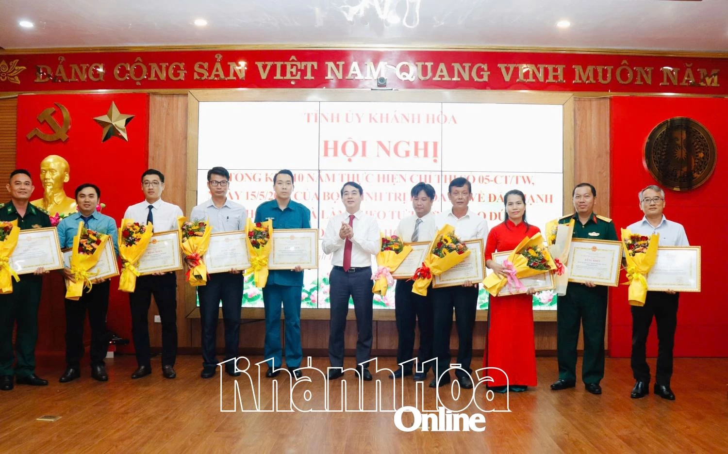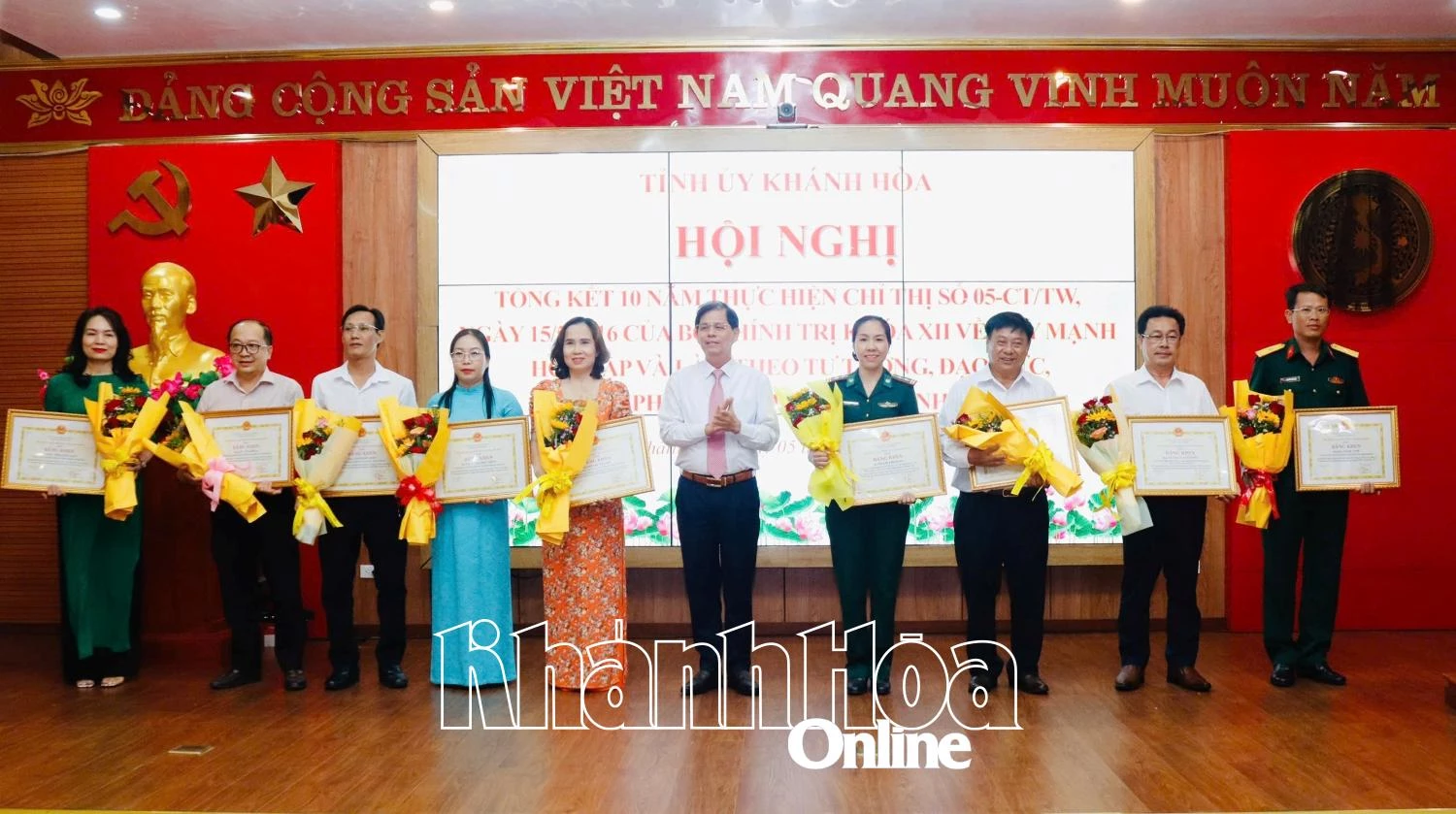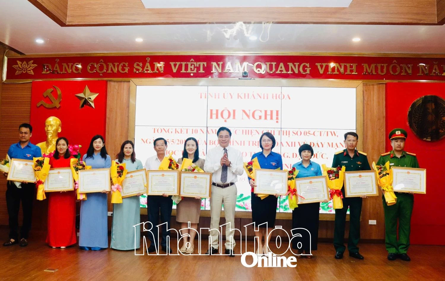 Trong 10 năm thực hiện Chỉ thị số 05, tỉnh Khánh Hòa có 15 tập thể, cá nhân được Thủ tướng Chính phủ tặng bằng khen; 9 tập thể, cá nhân được Trưởng ban Tuyên giáo và Dân vận Trung ương tặng bằng khen; 205 tập thể, cá nhân được UBND tỉnh tặng bằng khen về thành tích tiêu biểu trong học tập và làm theo tư tưởng, đạo đức, phong cách Hồ Chí Minh. Tỉnh có 62 tập thể, cá nhân tiêu biểu được giới thiệu tham gia triển lãm “Những tấm gương bình dị mà cao quý” hằng năm do Bảo tàng Hồ Chí Minh phối hợp với Ban Tuyên giáo và Dân vận Trung ương tổ chức; 3 điển hình của tỉnh được Ban Tuyên giáo và Dân vận Trung ương lựa chọn tham gia Chương trình “Hồ Chí Minh - Hành trình khát vọng” để tôn vinh các điển hình tiêu biểu toàn quốc trong học tập và làm theo Bác.