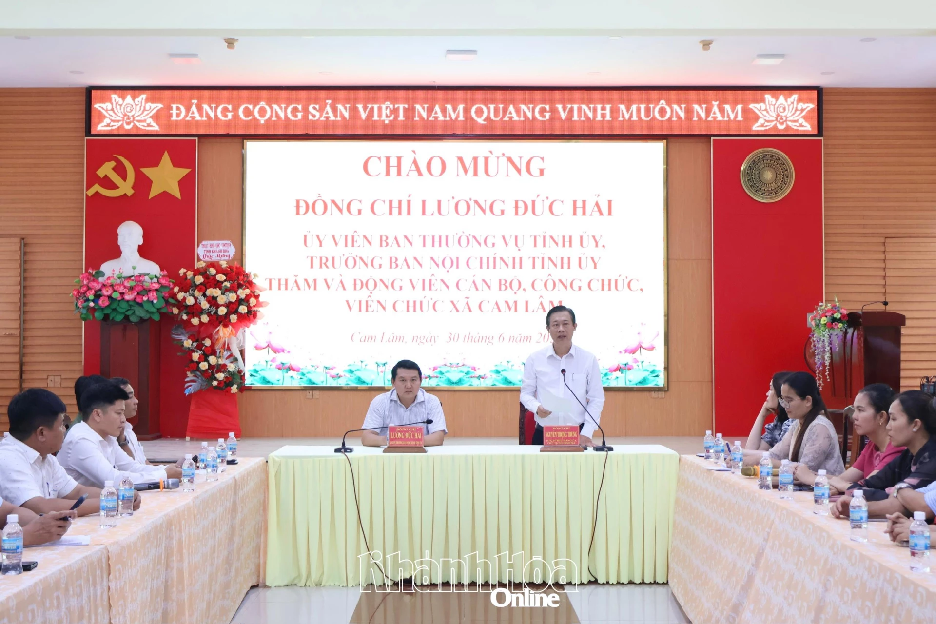 Chiều 30-6, ông Lương Đức Hải - Ủy viên Ban Thường vụ Tỉnh ủy, Trưởng ban Nội chính Tỉnh ủy Khánh Hòa đến thăm, động viên cán bộ, công chức, viên chức xã Cam Lâm.