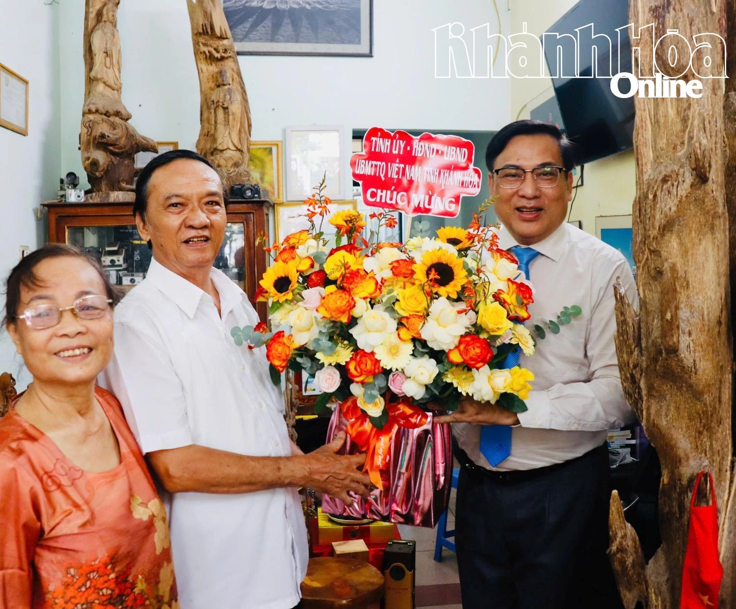 | Ông Lê Hữu Thọ tặng hoa chúc mừng Cơ quan đại diện Tạp chí Thương hiệu và Công luận. |