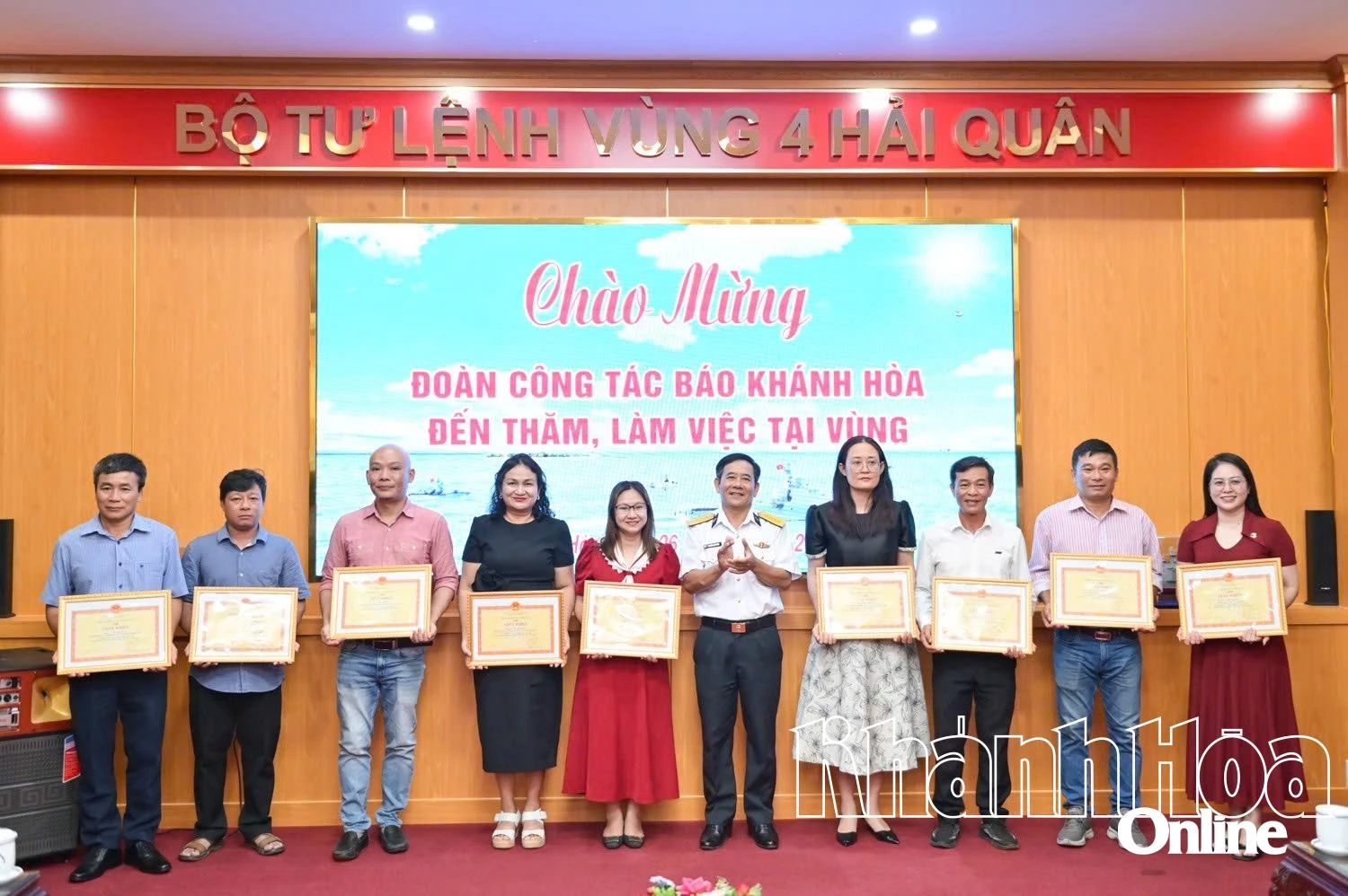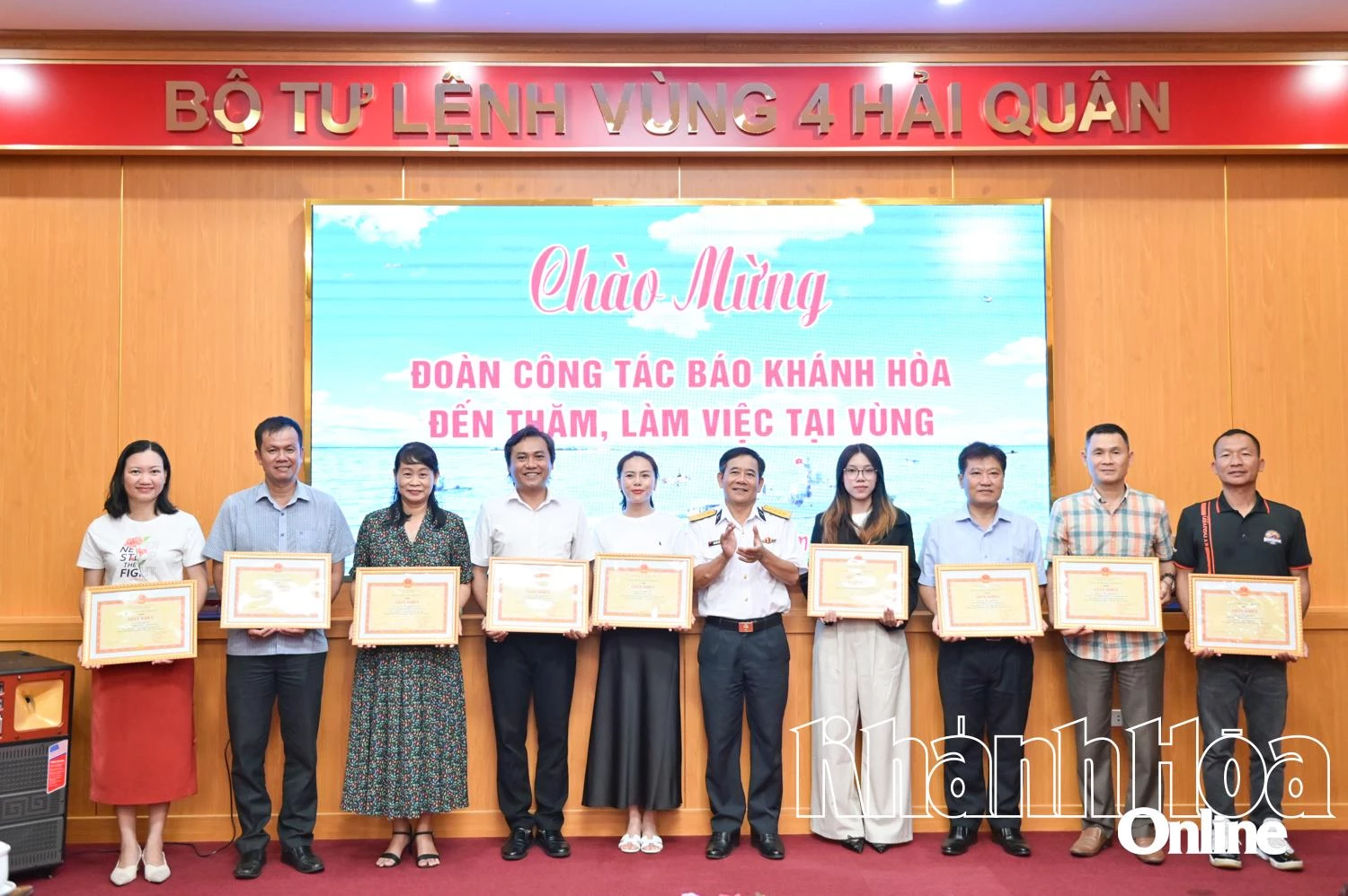 Dịp này, Bộ Tư lệnh Vùng 4 Hải quân trao tặng giấy khen cho 7 tập thể và 25 cá nhân của Báo Khánh Hòa đã có thành tích xuất sắc trong phối hợp tổ chức chương trình “Sức sống Trường Sa”.