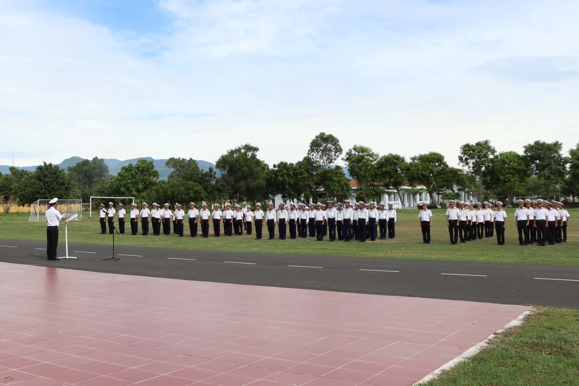 | Kiểm tra nội dung chào cờ, duyệt đội ngũ khối cơ quan lữ đoàn. |