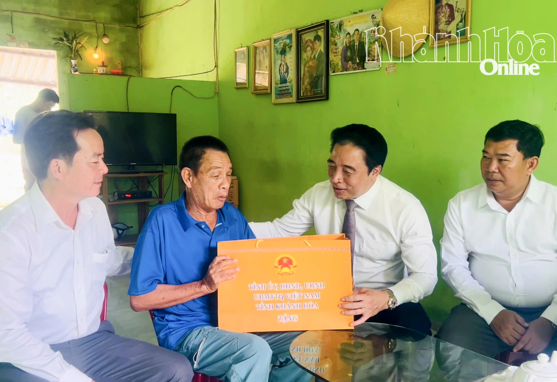 | Phó Bí thư Thường trực Tỉnh ủy Nguyễn Khắc Toàn trao quà, thăm hỏi ông Trần Cho. |