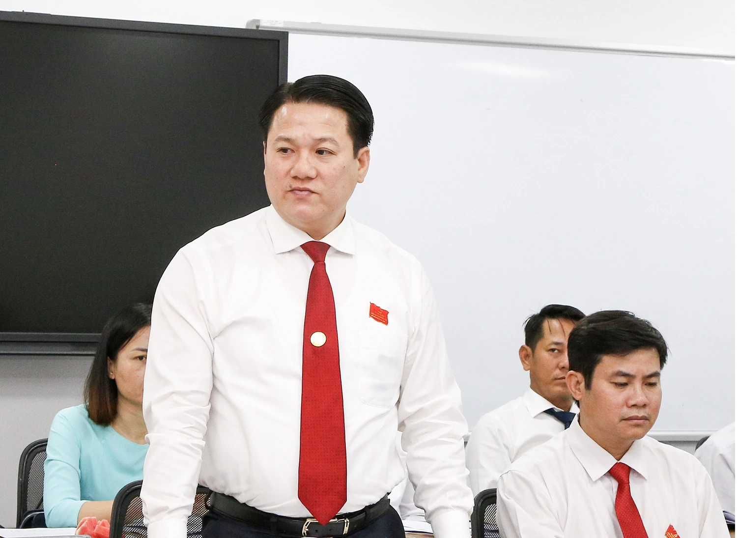 Đề cập đến công tác cán bộ, tại Tổ thảo luận số 5, đại biểu Châu Thanh Hải - Bí thư Đảng ủy, Chủ tịch HĐND xã Thuận Nam đề nghị tỉnh đẩy mạnh phân cấp, phân quyền cho cấp xã; trên cơ sở quy định của pháp luật, giao quyền cho ban thường vụ đảng ủy cấp xã quyết định số lượng phòng và số lượng lãnh đạo cấp phòng phù hợp với thực tế từng địa phương. Một số đại biểu đề nghị bổ sung giải pháp, chính sách thu hút nguồn nhân lực và nâng cao năng lực cho cán bộ, công chức, viên chức, người lao động để bộ máy hoạt động thông suốt, hiệu lực, hiệu quả sau khi sắp xếp đơn vị hành chính.
