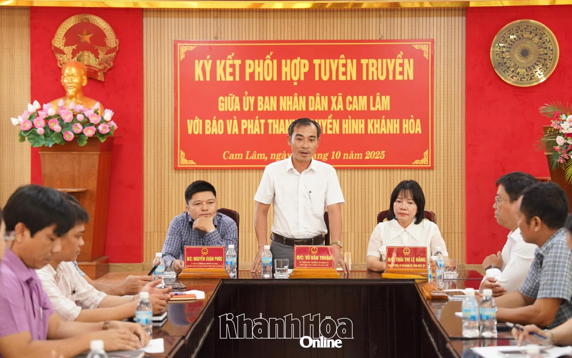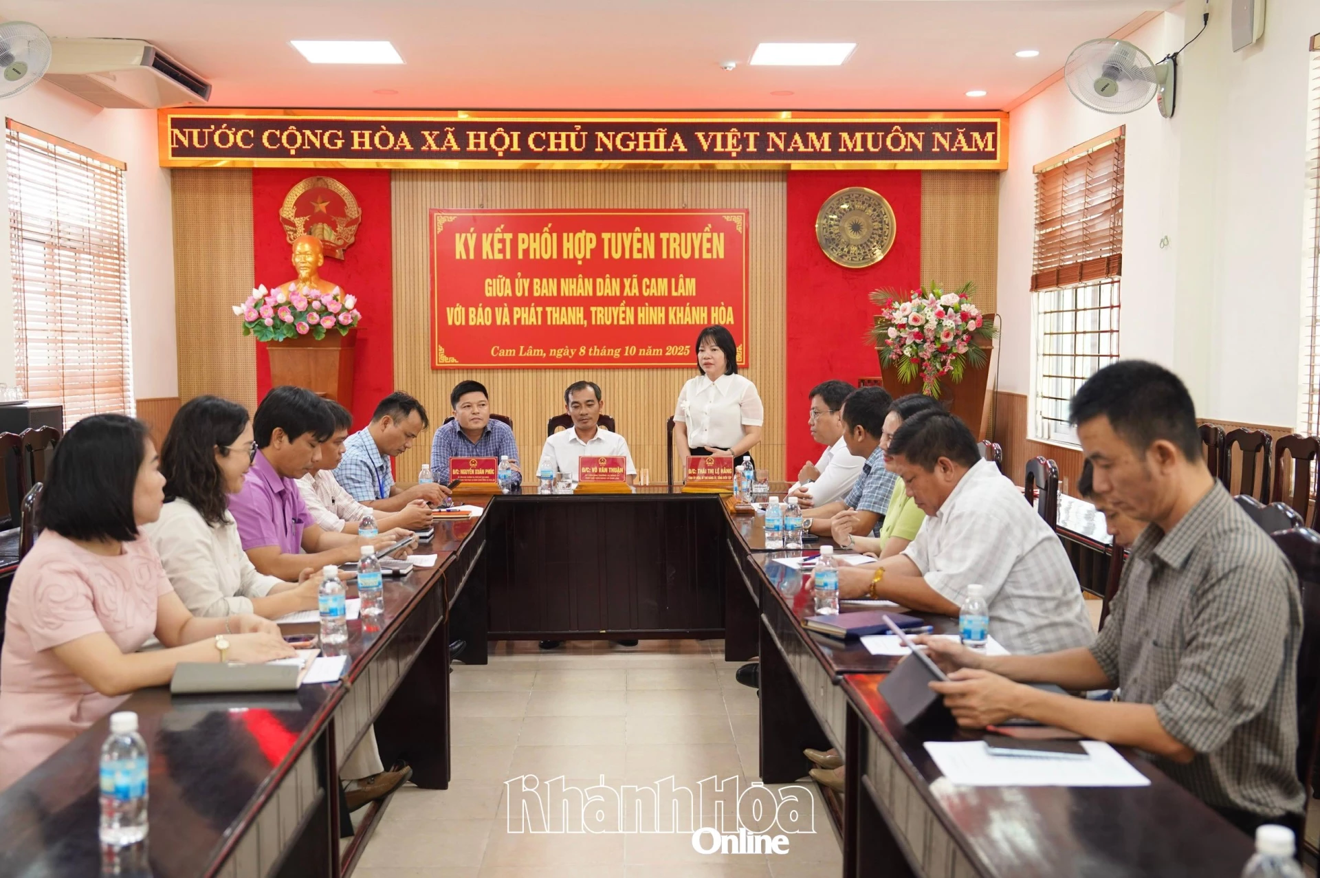Phát biểu tại lễ ký kết, Tổng Biên tập Báo và Phát thanh, Truyền hình Khánh Hòa Thái Thị Lệ Hằng cho rằng, việc ký kết phối hợp tuyên truyền với các địa phương, trong đó có UBND xã Cam Lâm có ý nghĩa rất quan trọng, đặc biệt trong thời đại 4.0 khi truyền thông không chỉ là đưa tin, mà còn là cầu nối lan tỏa chính sách, khơi dậy niềm tin và tạo đồng thuận xã hội. Báo và Phát thanh, Truyền hình Khánh Hòa với chức năng là kênh truyền thông chính thống đa nền tảng sẽ luôn đồng hành cùng địa phương trong việc truyền thông chính sách, xây dựng hình ảnh, định vị thương hiệu, xử lý khủng hoảng truyền thông cũng như quảng bá các hoạt động một cách hiệu quả, nhân văn và chuyên nghiệp.
