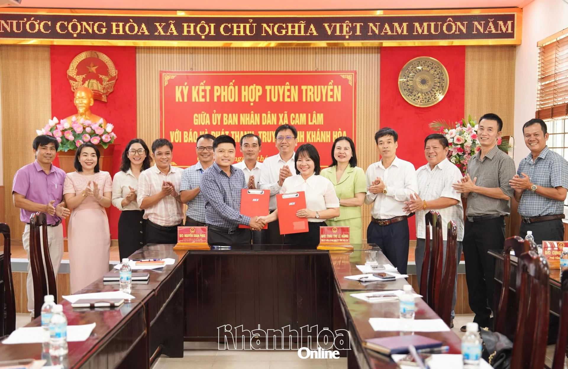 Tham gia lễ ký kết có các đồng chí: Thái Thị Lệ Hằng - Tổng Biên tập Báo và Phát thanh, Truyền hình Khánh Hòa; Cung Phú Quốc - Phó Tổng Biên tập Báo và Phát thanh, Truyền hình Khánh Hòa; Võ Văn Thuận - Phó Chủ tịch UBND xã Cam Lâm; Nguyễn Xuân Phúc - Phó Chủ tịch UBND, Giám đốc Trung tâm Phục vụ hành chính công xã Cam Lâm, cùng đại diện các phòng, ban của hai đơn vị.