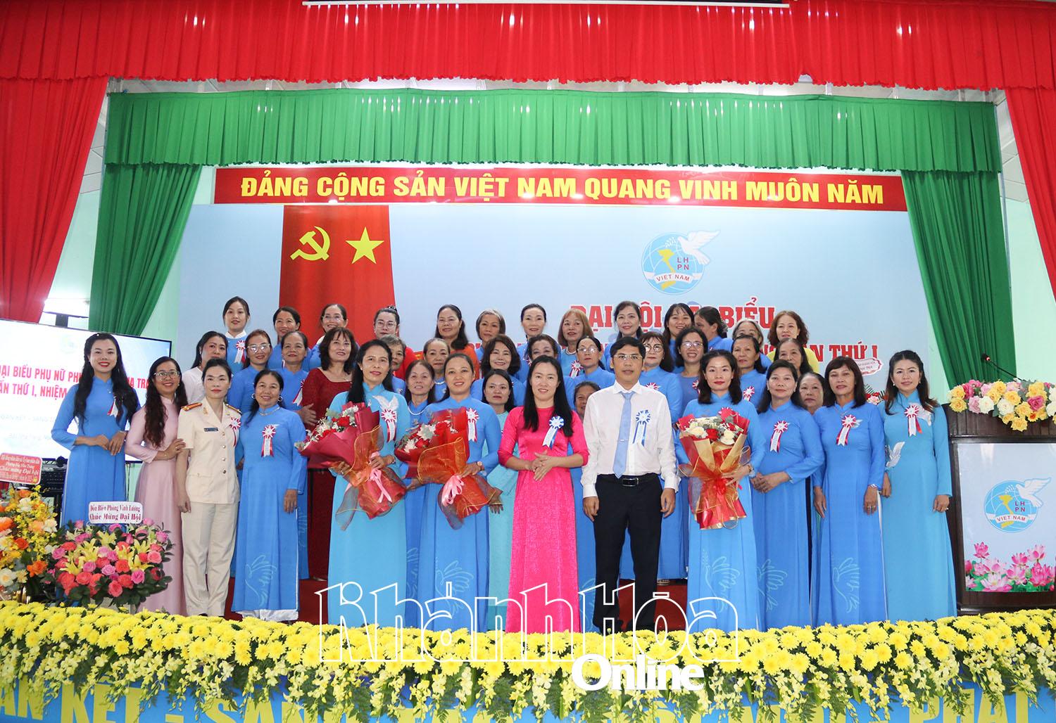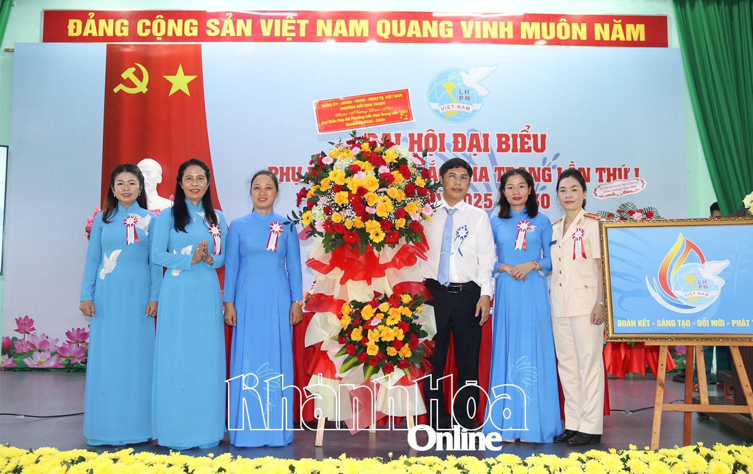 | Đại diện Hội Liên hiệp Phụ nữ tỉnh và lãnh đạo phường Bắc Nha Trang tặng hoa chúc mừng Ban Chấp hành Hội Liên hiệp Phụ nữ phường Bắc Nha Trang, nhiệm kỳ 2025 - 2030. |