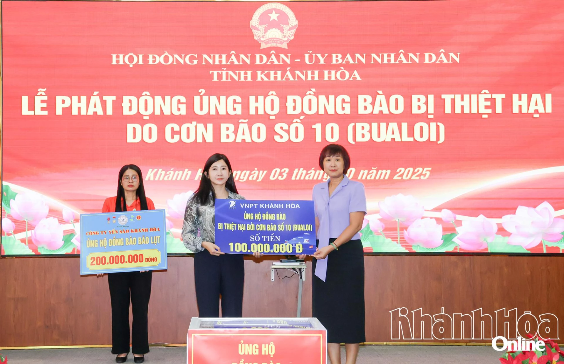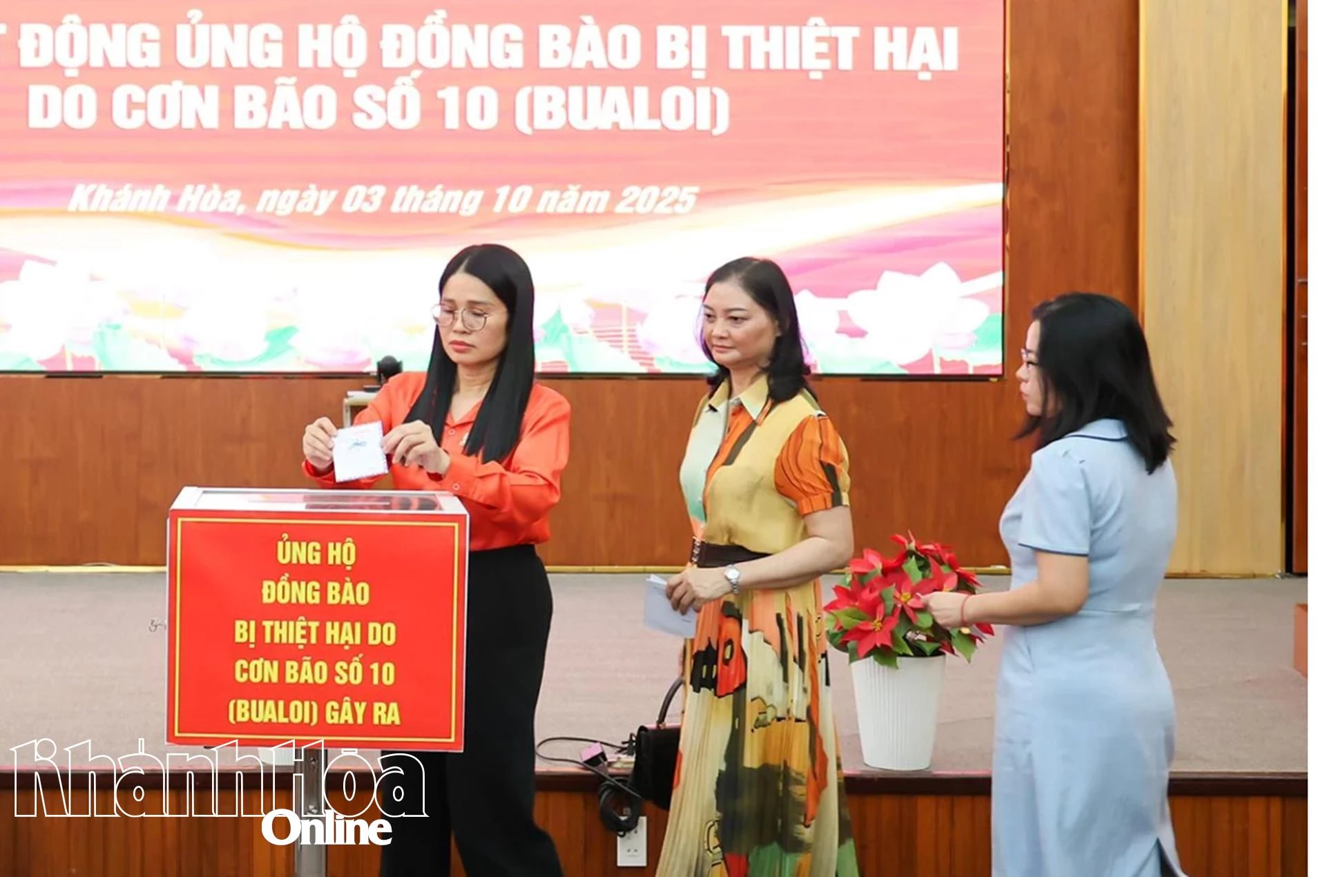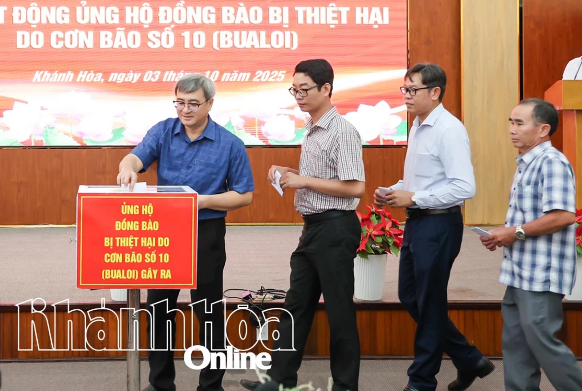Sáng 3-10, HĐND và UBND tỉnh Khánh Hòa tổ chức Lễ phát động ủng hộ đồng bào khắc phục thiệt hại do bão số 10 (Bualoi) gây ra. Dự lễ có các đồng chí: Nguyễn Long Biên - Ủy viên Ban Thường vụ Tỉnh ủy, Phó Chủ tịch Thường trực UBND tỉnh; Phạm Thị Xuân Trang - Phó Chủ tịch HĐND tỉnh; Lê Huyền - Phó Chủ tịch UBND tỉnh; lãnh đạo, cán bộ, công chức, viên chức, người lao động các sở, ban, ngành, đơn vị sự nghiệp, doanh nghiệp.