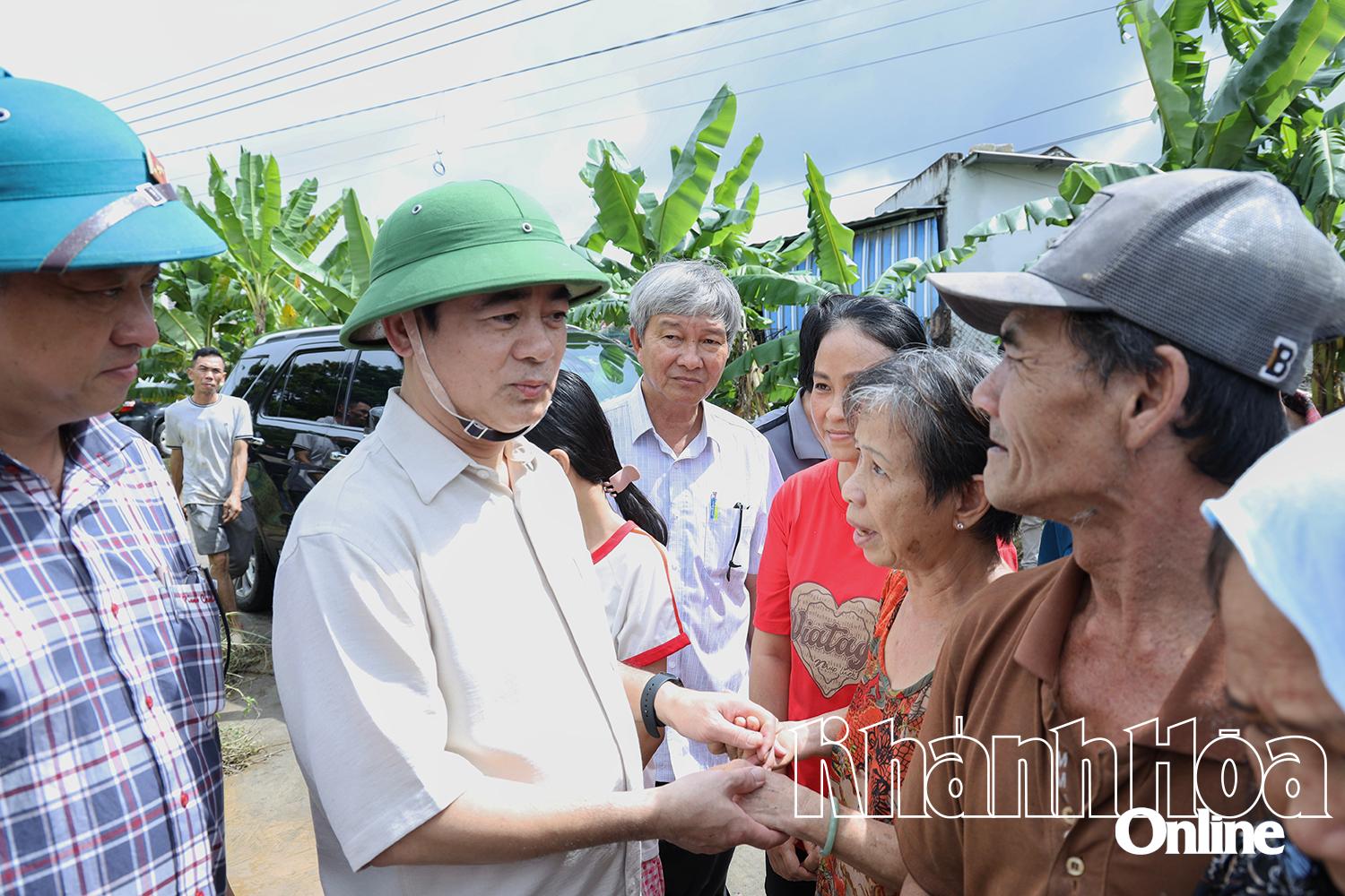 | Đồng chí Nghiêm Xuân Thành thăm hỏi, động viên người dân Tổ dân phố Võ Cang, phường Tây Nha Trang. |