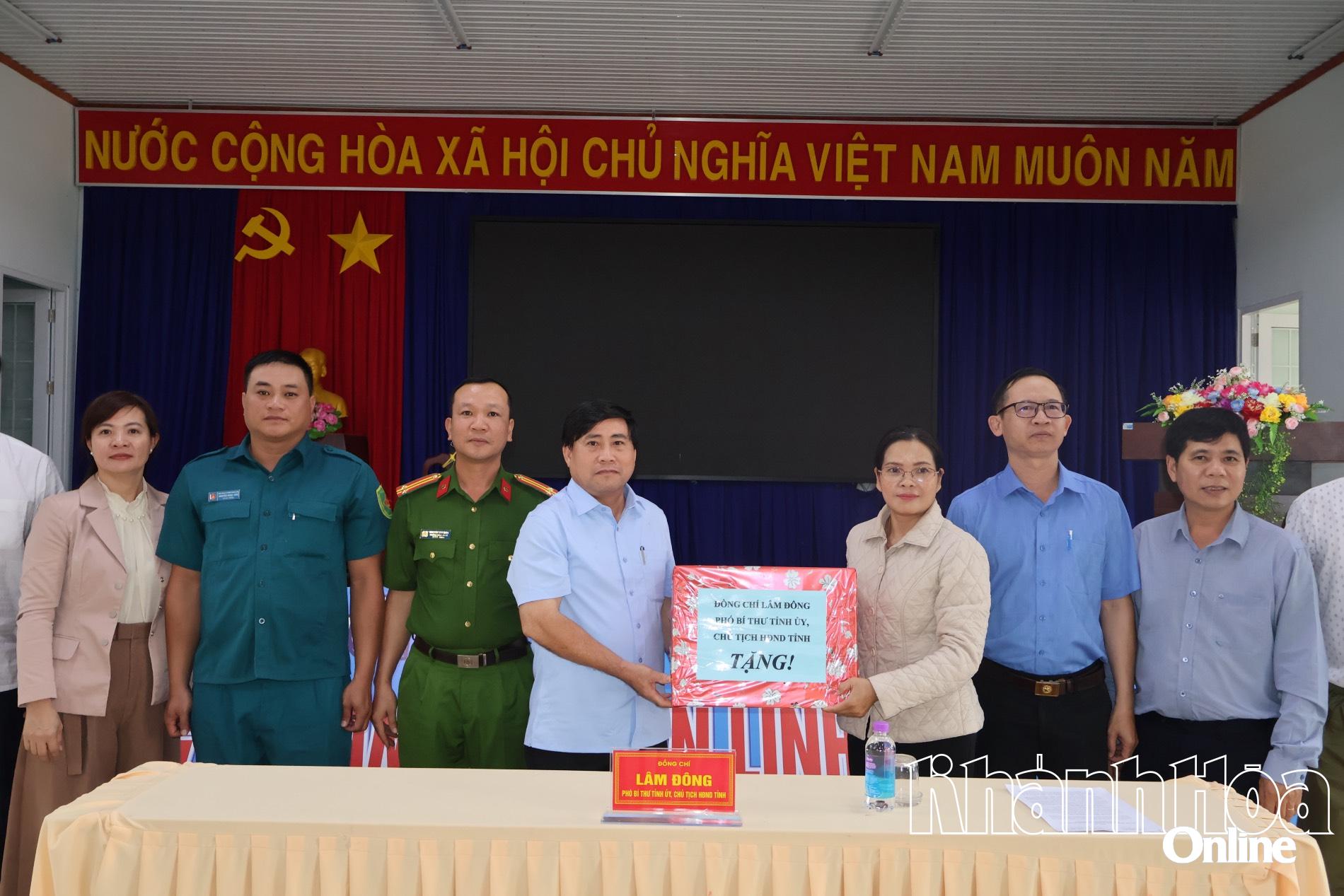 | Phó Bí Thư Tỉnh ủy Lâm Đông tặng quà tại xã Đông Khánh Sơn. |