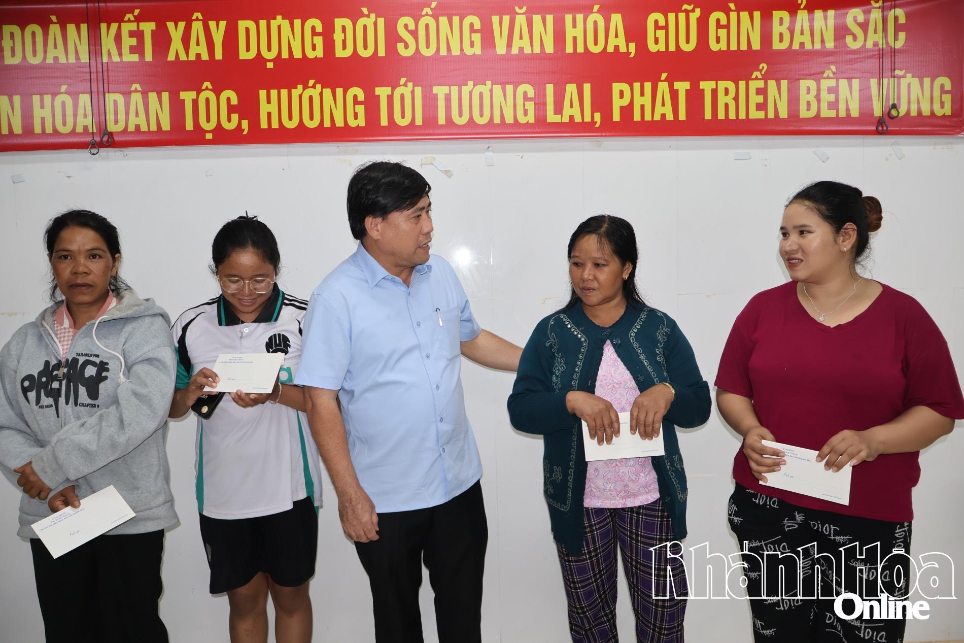 | Phó Bí Thư Tỉnh ủy Lâm Đông tặng quà người dân xã Khánh Sơn. |