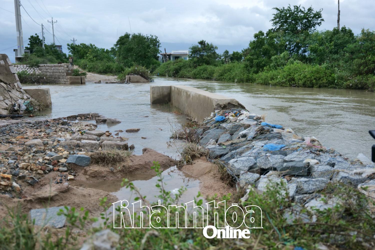 Tại xã Ninh Hải, thống kê thiệt hại ước tính hơn 144,7 tỷ đồng, tập trung ở cây trồng, vật nuôi, thủy sản và nhiều công trình kết cấu hạ tầng. Đáng chú ý, nhiều vị trí giao thông, thủy lợi bị hư hỏng nghiêm trọng cần sớm được sửa chữa để đảm bảo an toàn và phục hồi sản xuất. Cụ thể: Sạt lở bờ đê suối Bầu (dài 90m), nguy cơ tiếp tục xói sâu nếu mưa lớn kéo dài; sạt lở bờ đê kênh Bắc (30m), ảnh hưởng trực tiếp đến dòng chảy, sản xuất nông nghiệp; sạt lở, hư hỏng 30ha ruộng muối...