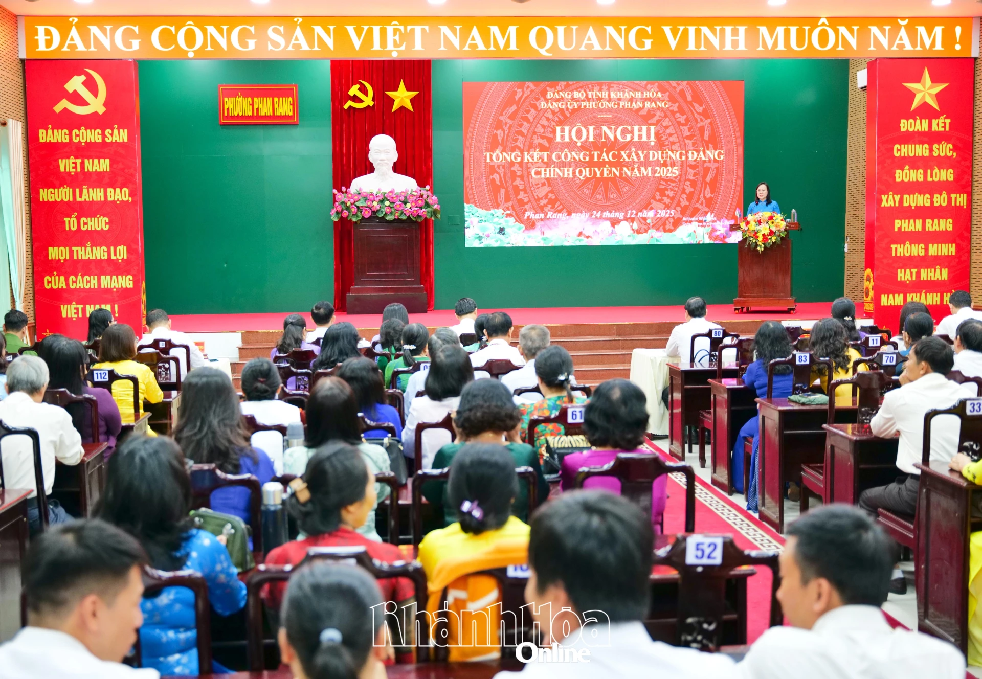 Sáng 24-12, Đảng ủy phường Phan Rang tổ chức Hội nghị tổng kết công tác xây dựng Đảng, chính quyền năm 2025. Đồng chí Lâm Đông - Phó Bí thư Tỉnh uỷ, Chủ tịch HĐND tỉnh Khánh Hoà tham dự và chỉ đạo hội nghị.