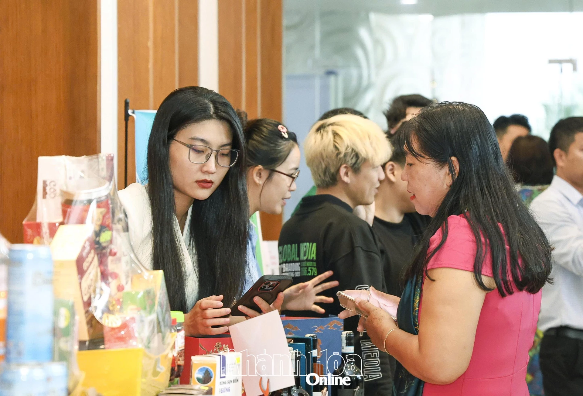 | Phó Chủ tịch UBND tỉnh Nguyễn Thanh Hà thăm gian hàng trưng bày tại chương trình. |