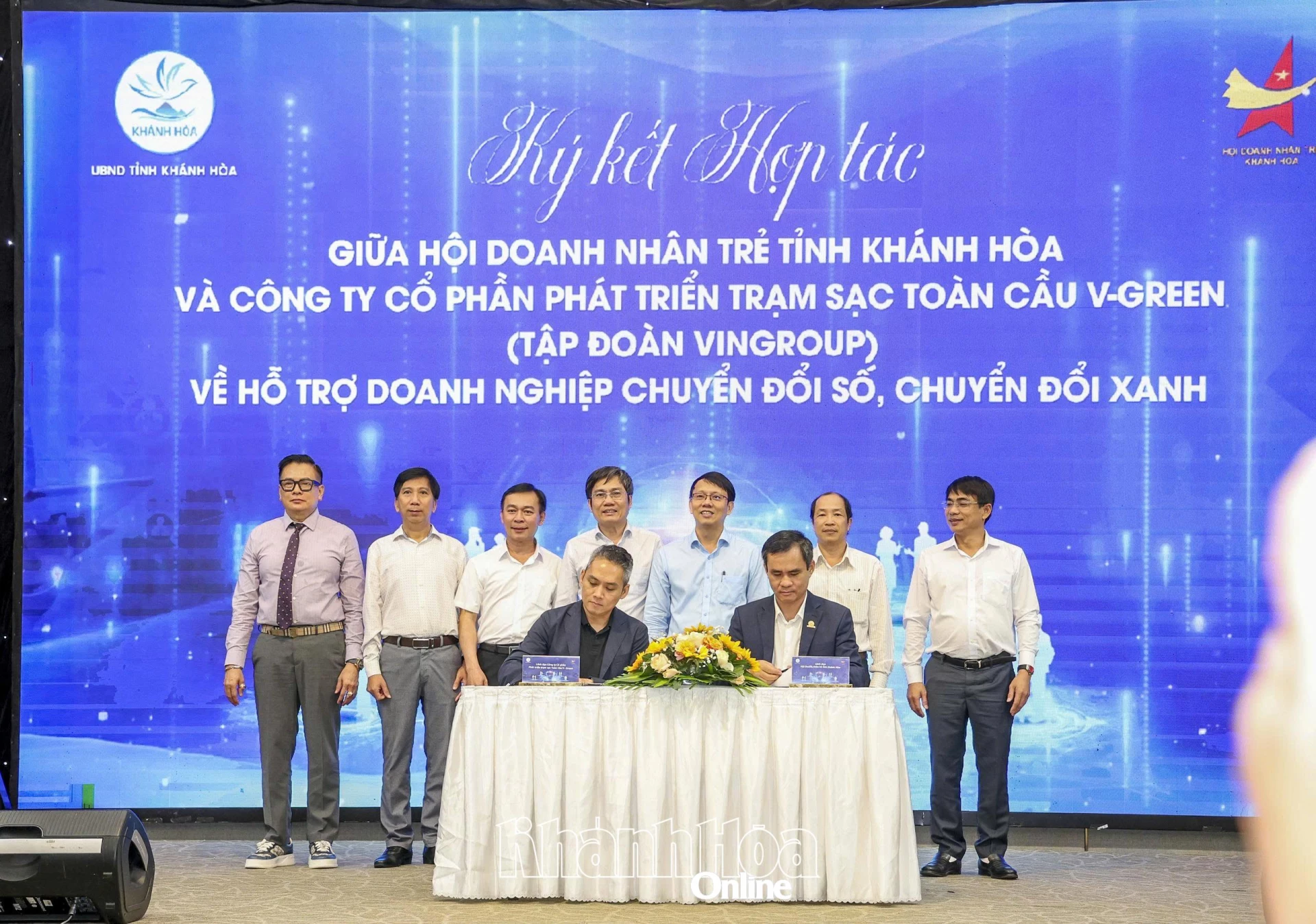 | Hội Doanh nhân trẻ tỉnh Khánh Hòa và Tập đoàn Vingroup ký kết hợp tác về hỗ trợ doanh nghiệp chuyển đổi số, chuyển đổi xanh. |