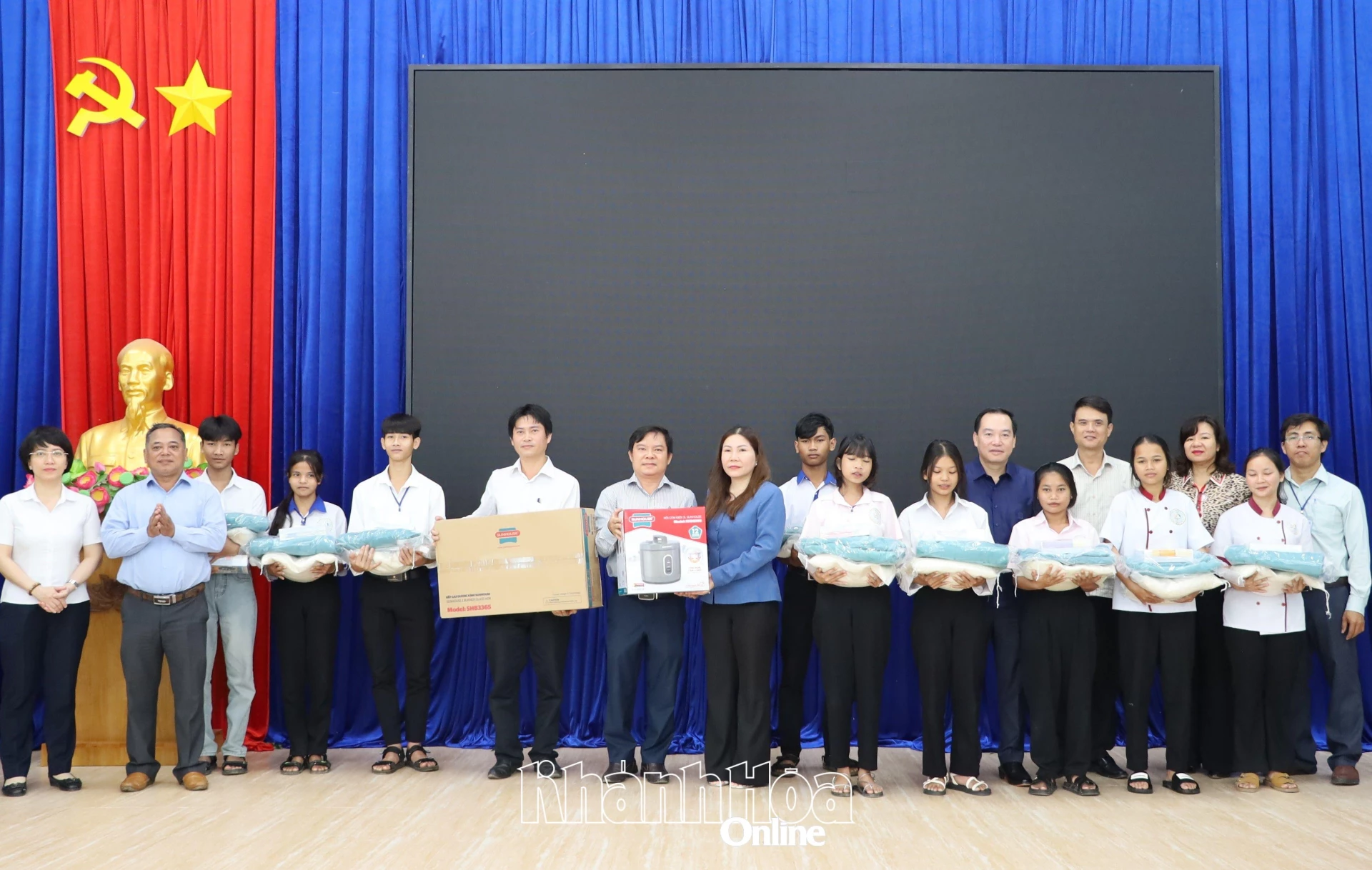 | Lãnh đạo Ngân hàng Nông nghiệp và Phát triển nông thôn Việt Nam - Chi nhánh Khánh Hòa trao hỗ trợ cho Trường Trung cấp nghề Dân tộc nội trú Khánh Vĩnh. |