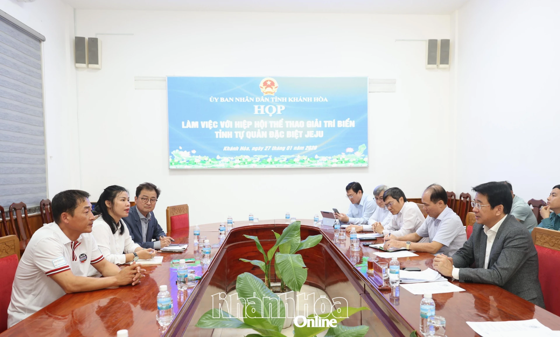 Sáng 27-1, đồng chí Nguyễn Long Biên - Ủy viên Ban Thường vụ Tỉnh ủy, Phó Chủ tịch Thường trực UBND tỉnh Khánh Hòa chủ trì buổi làm việc với Hiệp hội Thể thao giải trí biển Jeju (Hàn Quốc) về các nội dung hợp tác trong lĩnh vực y tế, thể thao biển và truyền thông. Tham dự cuộc họp có ông Park Sung Jae - Chủ tịch Hiệp hội Thể thao giải trí biển Jeju; đại diện các sở, ban, ngành của tỉnh.
