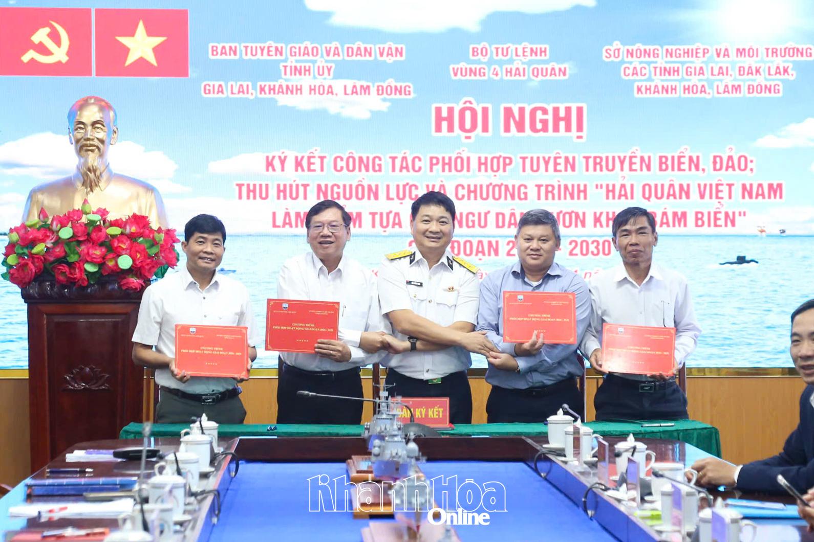 Tại hội nghị, Bộ Tư lệnh Vùng 4 Hải quân ký kết chương trình phối hợp công tác tuyên truyền biển, đảo và tuyên truyền thu hút nguồn nhân lực hải quân với Ban Tuyên giáo và Dân vận Tỉnh ủy các tỉnh: Khánh Hòa, Gia Lai và Lâm Đồng. Nội dung phối hợp gồm: Tuyên truyền vị trí, vai trò, tầm quan trọng của biển, đảo Việt Nam; quan điểm, chủ trương của Đảng, Nhà nước về bảo vệ chủ quyền biển, đảo; đẩy mạnh tuyên truyền, định hướng nghề nghiệp, thu hút thanh niên các địa phương tham gia xây dựng Quân chủng Hải quân trong tình hình mới.