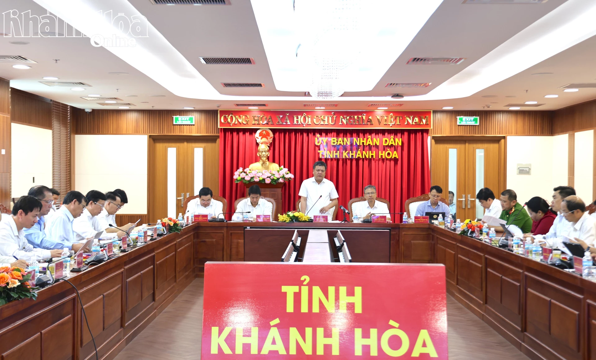 Sáng 9-3, các đồng chí: Trần Phong - Ủy viên Trung ương Đảng, Phó Bí thư Tỉnh ủy, Chủ tịch UBND tỉnh Khánh Hòa; Nguyễn Long Biên - Ủy viên Ban Thường vụ Tỉnh ủy, Phó Chủ tịch Thường trực UBND tỉnh; Trần Hòa Nam - Phó Chủ tịch UBND tỉnh; Trịnh Minh Hoàng - Phó Chủ tịch UBND tỉnh; Nguyễn Thanh Hà - Phó Chủ tịch UBND tỉnh đồng chủ trì cuộc họp UBND tỉnh thường kỳ tháng 3. Tham dự cuộc họp có đồng chí Lữ Thanh Hải - Ủy viên Ban Thường vụ Tỉnh ủy, Phó Chủ tịch Thường trực HĐND tỉnh. Cuộc họp được tổ chức trực tiếp tại trụ sở UBND tỉnh và trực tuyến đến các xã, phường của tỉnh.
