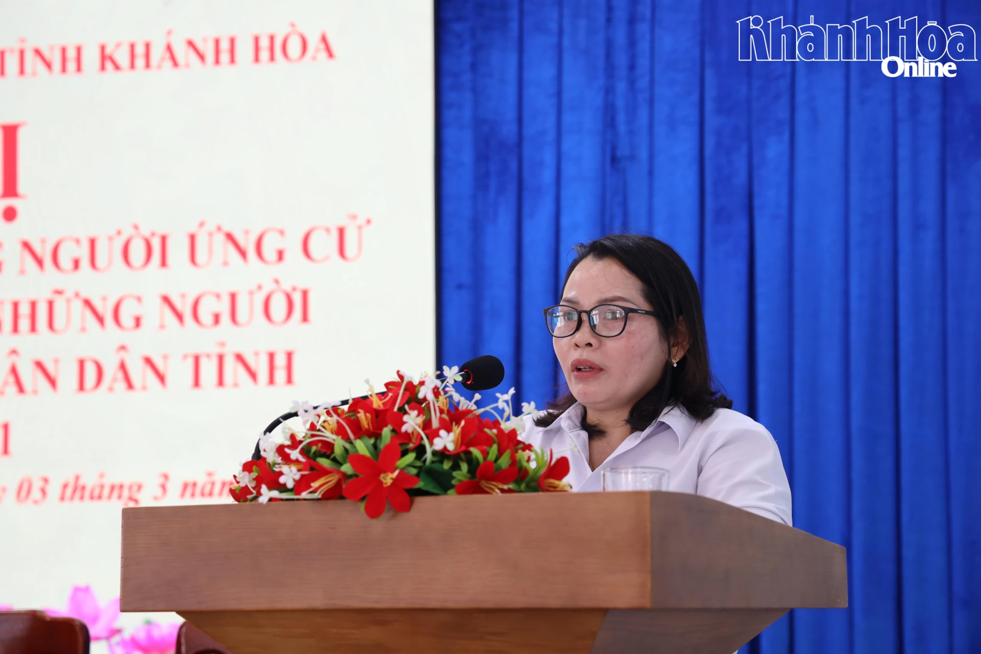 Tại hội nghị, đại diện Ban Thường trực Ủy ban MTTQ Việt Nam tỉnh đã thông qua tiểu sử tóm tắt của người ứng cử đại biểu Quốc hội khóa XVI, Đơn vị bầu cử số 3, gồm các ông, bà: Phùng Khánh Tài - Phó Bí thư chuyên trách Đảng ủy Quốc hội; Phạm Minh Tuấn - Đảng ủy viên Đảng ủy Quân chủng Hải quân, Chuẩn Đô đốc, Phó Tư lệnh Quân chủng Hải quân; Chamaléa Thị Thủy - Ủy viên Ban Thường vụ Tỉnh ủy, Giám đốc Sở Dân tộc và Tôn giáo; Nguyễn Chế Kim Trung - giáo viên, họa sĩ, Trưởng chuyên môn Mỹ thuật, Trường THPT Chuyên Lê Quý Đôn - Đông Hải; Patâu Axá Thị Dem - Phó Chủ tịch Ủy ban MTTQ Việt Nam xã, Chủ tịch Hội Liên hiệp Phụ nữ xã Bác Ái Đông.