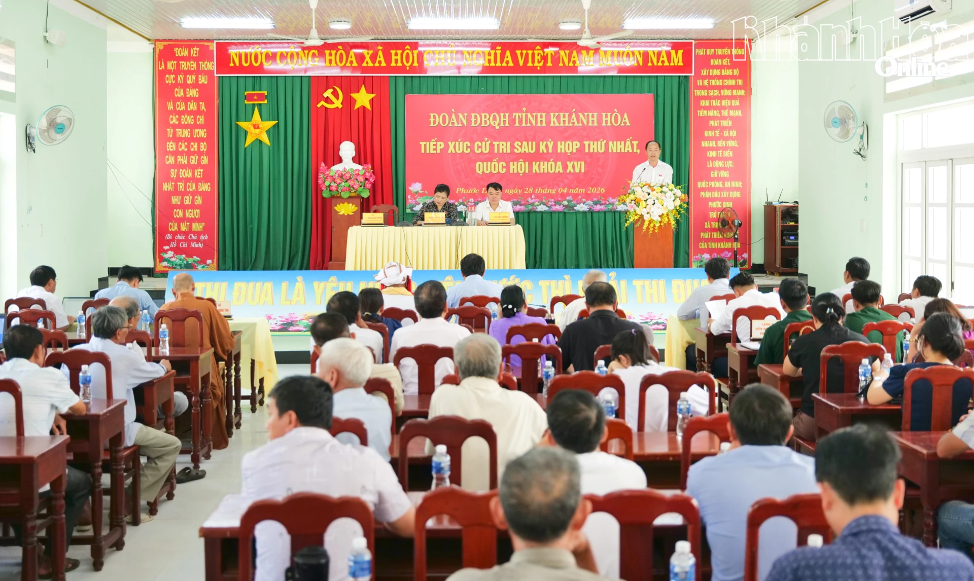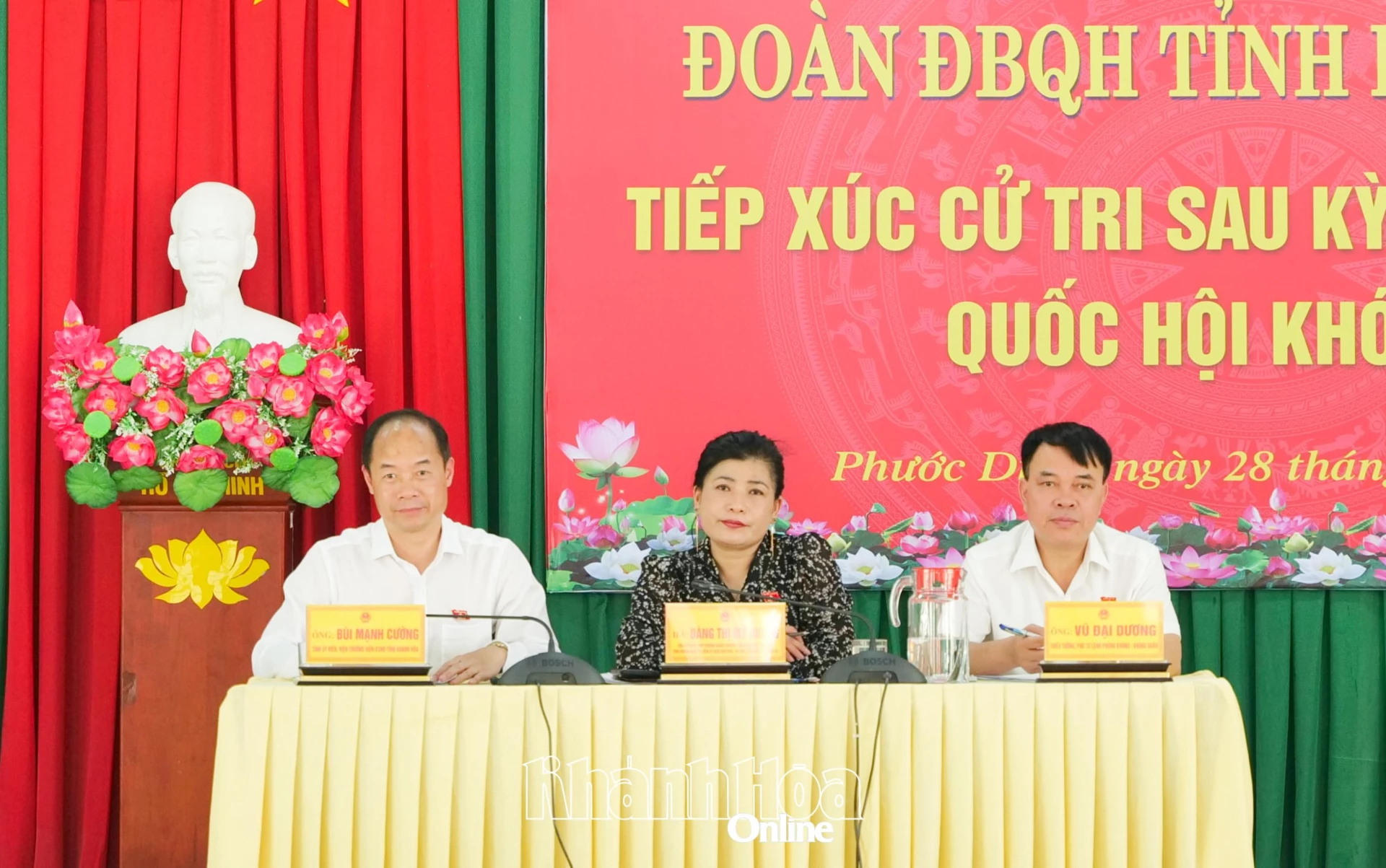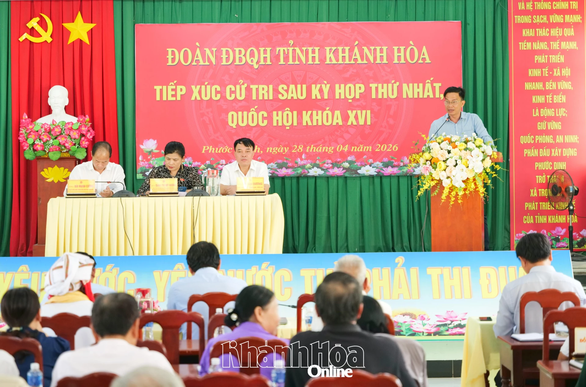 Chiều 28-4, đại biểu Quốc hội tỉnh Khánh Hòa gồm các ông, bà: Đàng Thị Mỹ Hương - Phó Trưởng đoàn chuyên trách Đoàn đại biểu Quốc hội tỉnh; Thiếu tướng Vũ Đại Dương - Phó Tư lệnh Quân chủng Phòng không - Không quân; Bùi Mạnh Cường - Viện trưởng Viện Kiểm sát nhân dân tỉnh tiếp xúc với cử tri xã Phước Dinh.