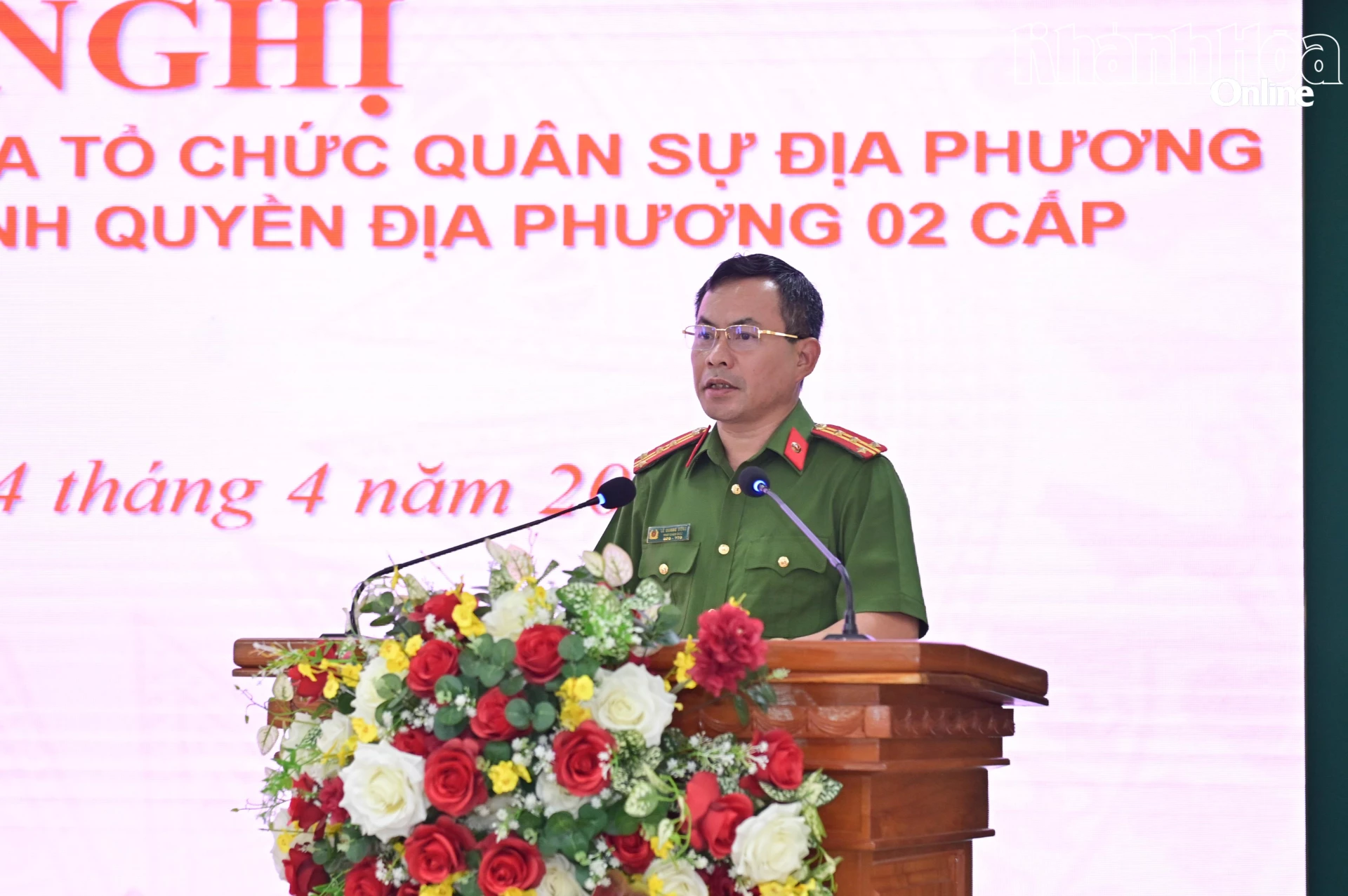 Chiều 14-4, Ban Chỉ huy Bộ đội Biên phòng (BĐBP) tỉnh tổ chức hội nghị rút kinh nghiệm hoạt động của tổ chức quân sự địa phương khi thực hiện hệ thống chính quyền địa phương 2 cấp. Thiếu tướng Vũ Quốc Ân - Phó Chính ủy BĐBP Việt Nam dự, chỉ đạo. Về phía tỉnh Khánh Hòa, dự hội nghị có các đồng chí: Hồ Xuân Trường - Ủy viên dự khuyết Trung ương Đảng, Phó Bí thư Thường trực Tỉnh ủy; Nguyễn Thanh Hà - Phó Chủ tịch UBND tỉnh.