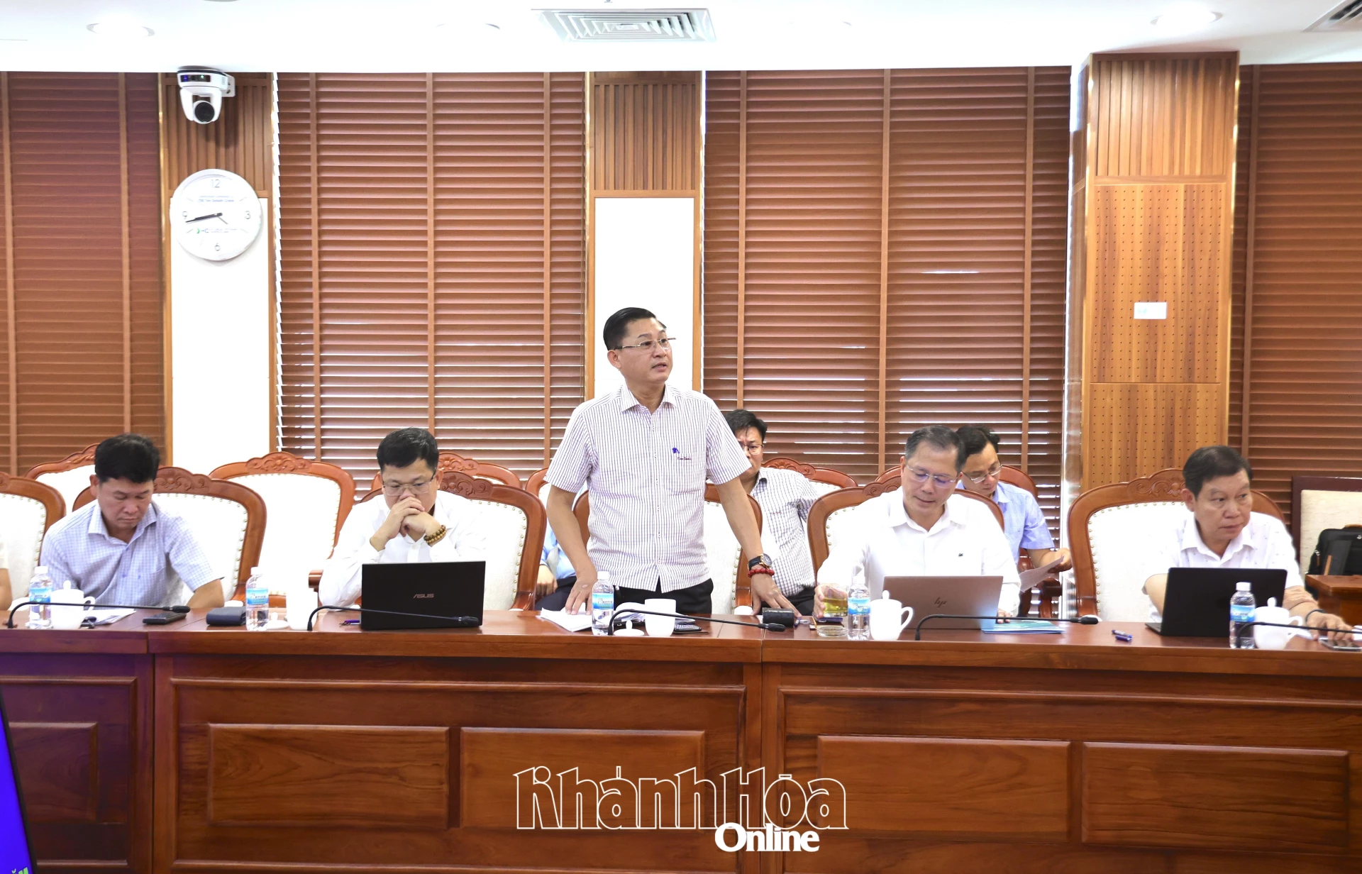| Chủ tịch UBND tỉnh Nguyễn Việt Hùng điều hành cuộc họp. |