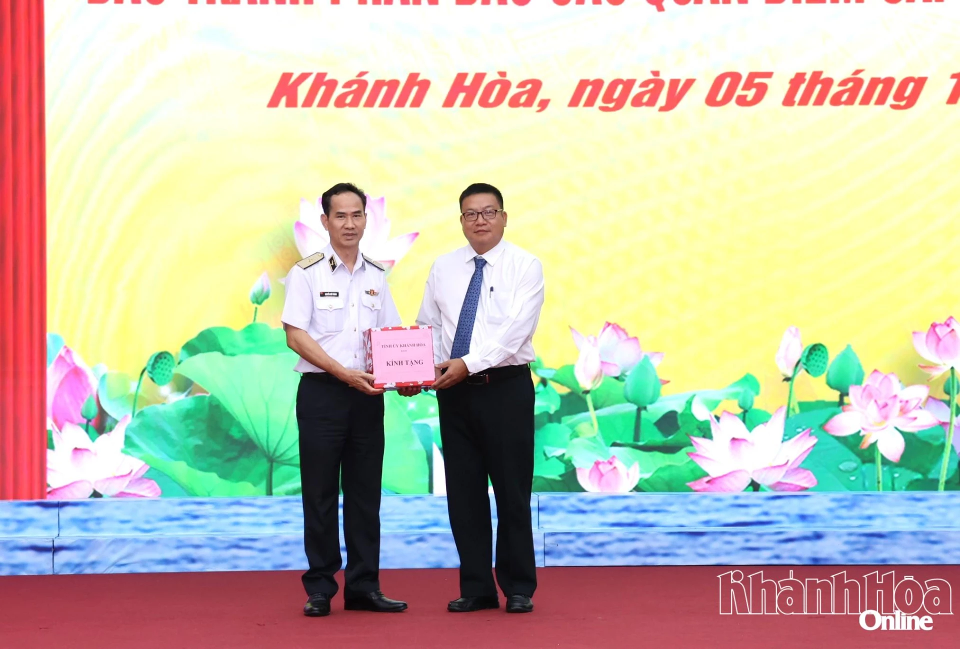 | Đồng chí Võ Hoàn Hải tặng quà cho Học viện Hải quân. |