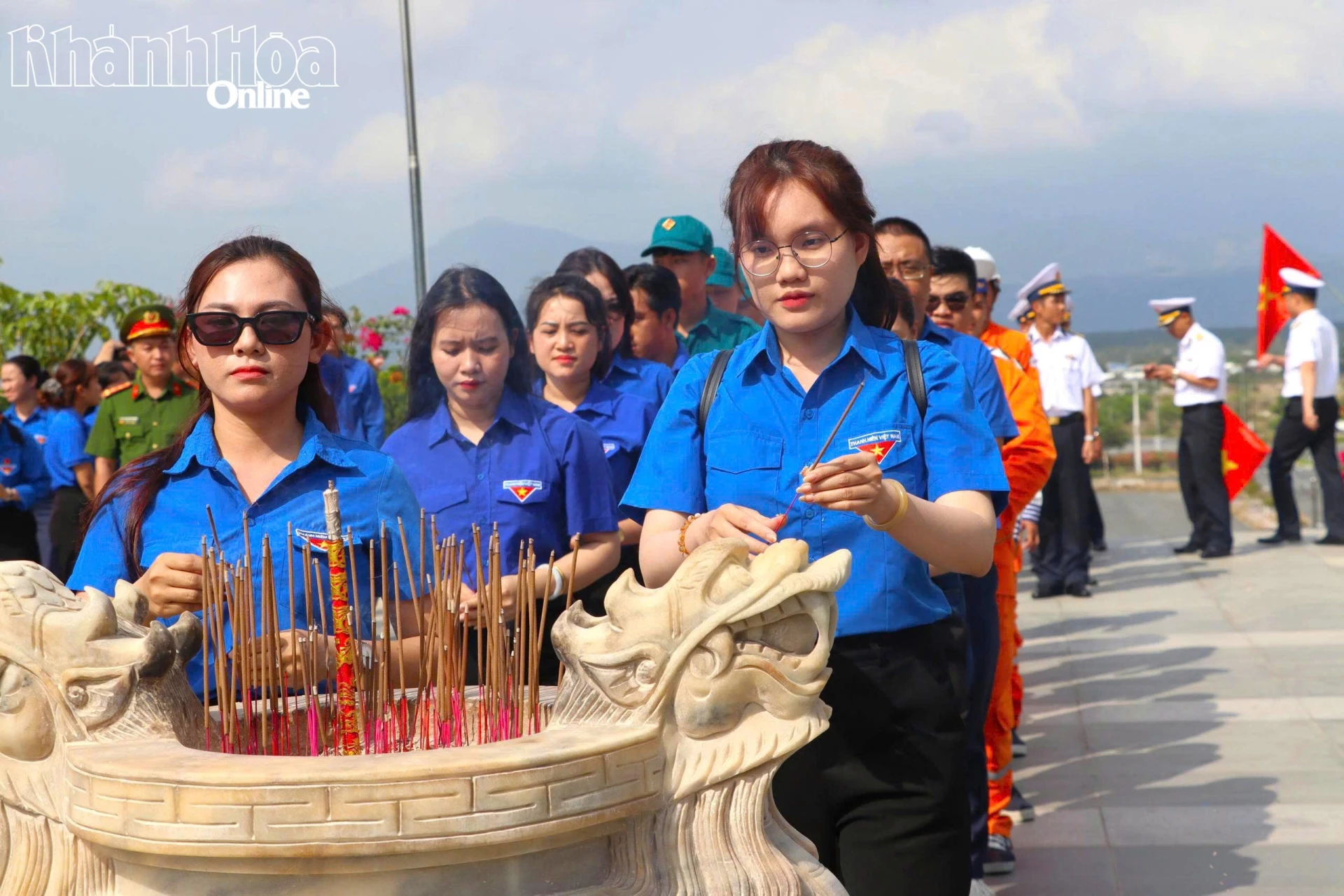 | Tuổi trẻ Công ty Cổ phần Điện lực Khánh Hòa bên Tượng đài “Những người nằm lại phía chân trời”. |