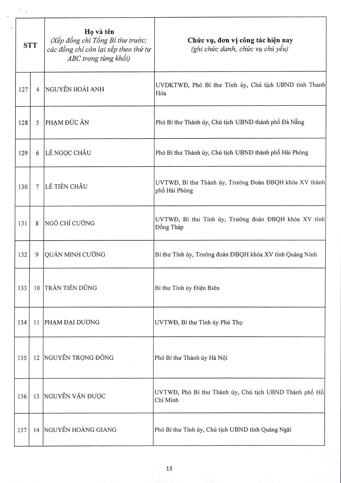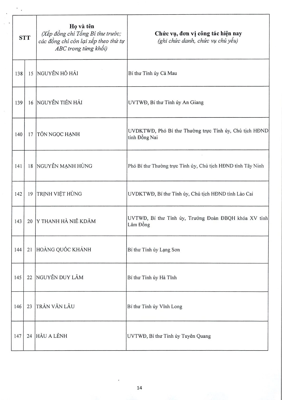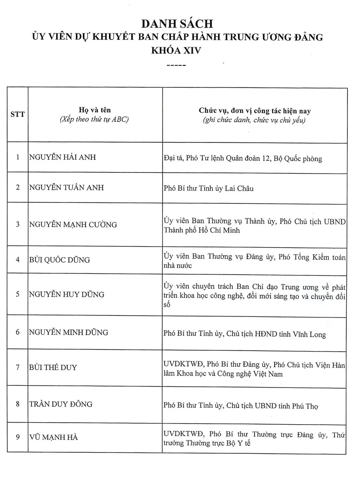 Dưới đây là Danh sách Ban Chấp hành Trung ương Đảng Cộng sản Việt Nam khóa XIV.