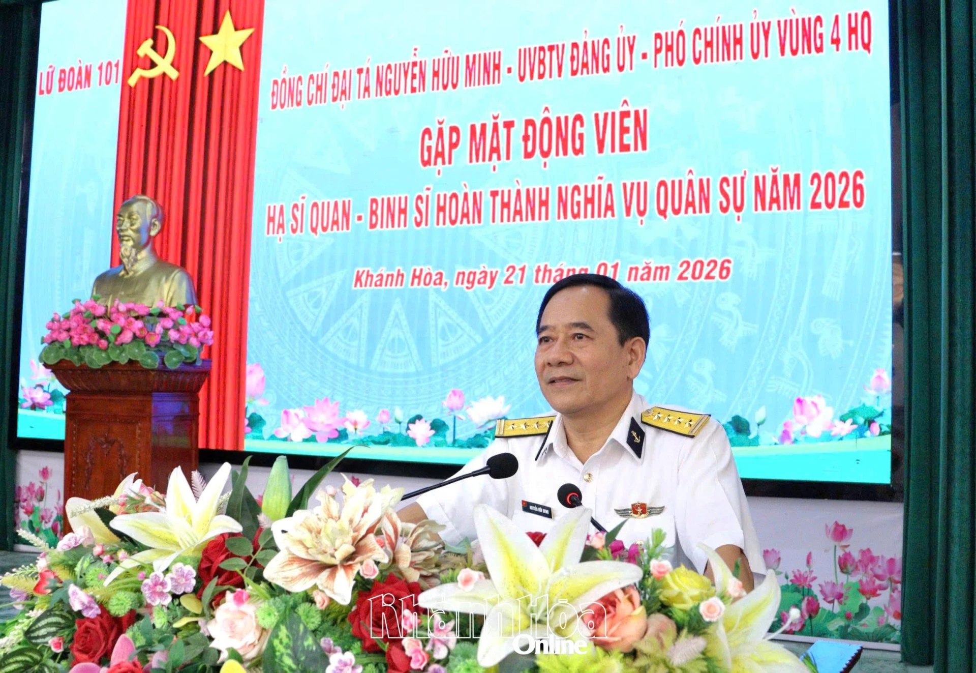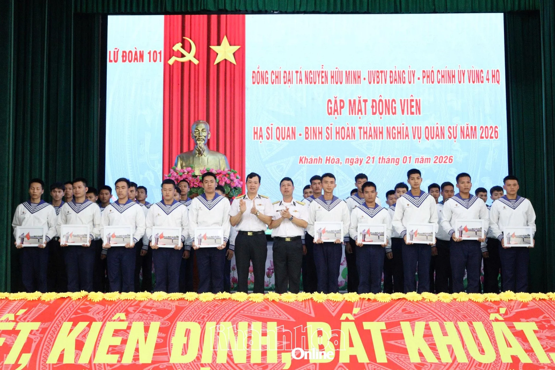 Tại buổi gặp mặt, Đại tá Nguyễn Hữu Minh ghi nhận, biểu dương những nỗ lực và kết quả công tác của các hạ sĩ quan, chiến sĩ tại Lữ đoàn 101 trong thời gian tại ngũ. Quá trình rèn luyện trong môi trường quân đội đã góp phần nâng cao bản lĩnh chính trị, ý thức tổ chức kỷ luật, tinh thần trách nhiệm và tác phong chính quy cho mỗi quân nhân. Phó Chính ủy Vùng 4 Hải quân mong muốn các chiến sĩ khi trở về địa phương tiếp tục phát huy những thành tích đã đạt được, tích cực tham gia xây dựng quê hương, giữ gìn và lan tỏa hình ảnh tốt đẹp của “Bộ đội Cụ Hồ - Người chiến sĩ Hải quân”.