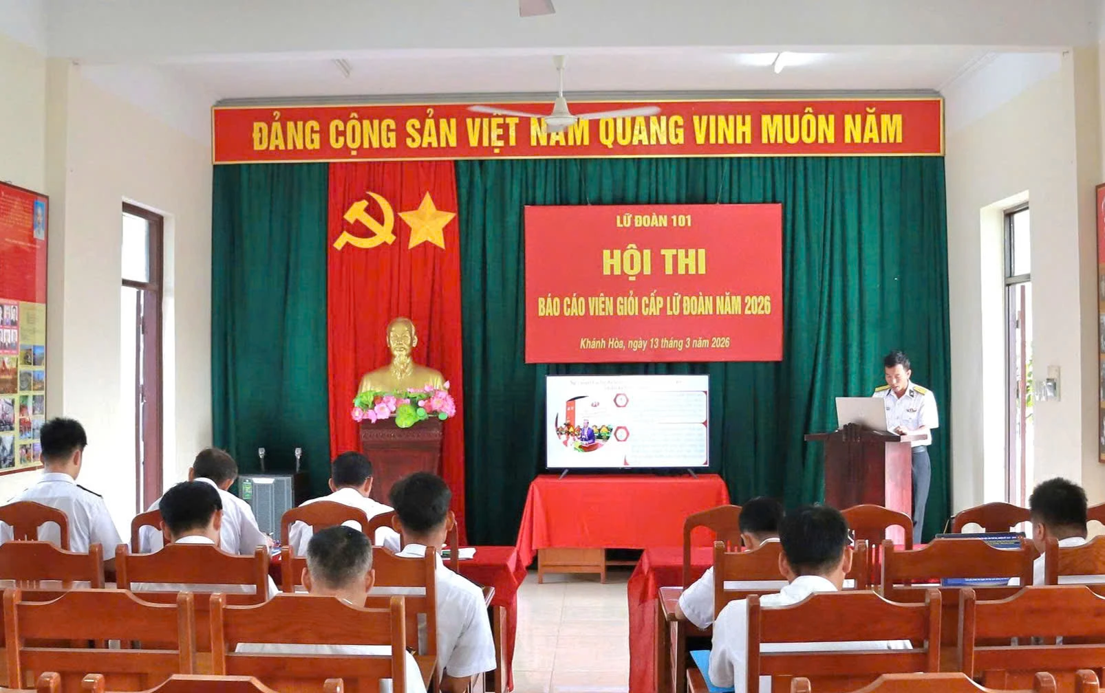 Ngày 13-3, Lữ đoàn 101, Vùng 4 Hải quân tổ chức hội thi báo cáo viên giỏi năm 2026. Đại tá Đỗ Hải Đăng - Phó Chính ủy Lữ đoàn tham dự và chỉ đạo.