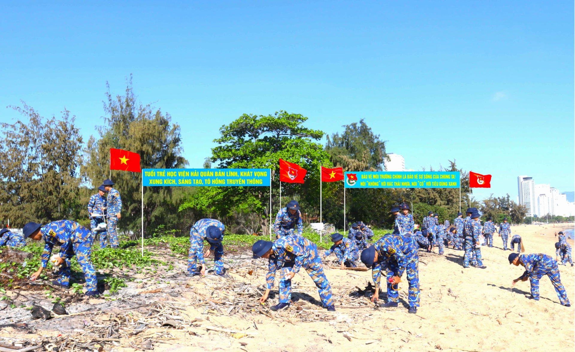 Sau buổi phát động, các cơ sở đoàn ra quân thu gom rác thải, làm sạch bãi biển..., góp phần xây dựng cảnh quan môi trường đơn vị.
